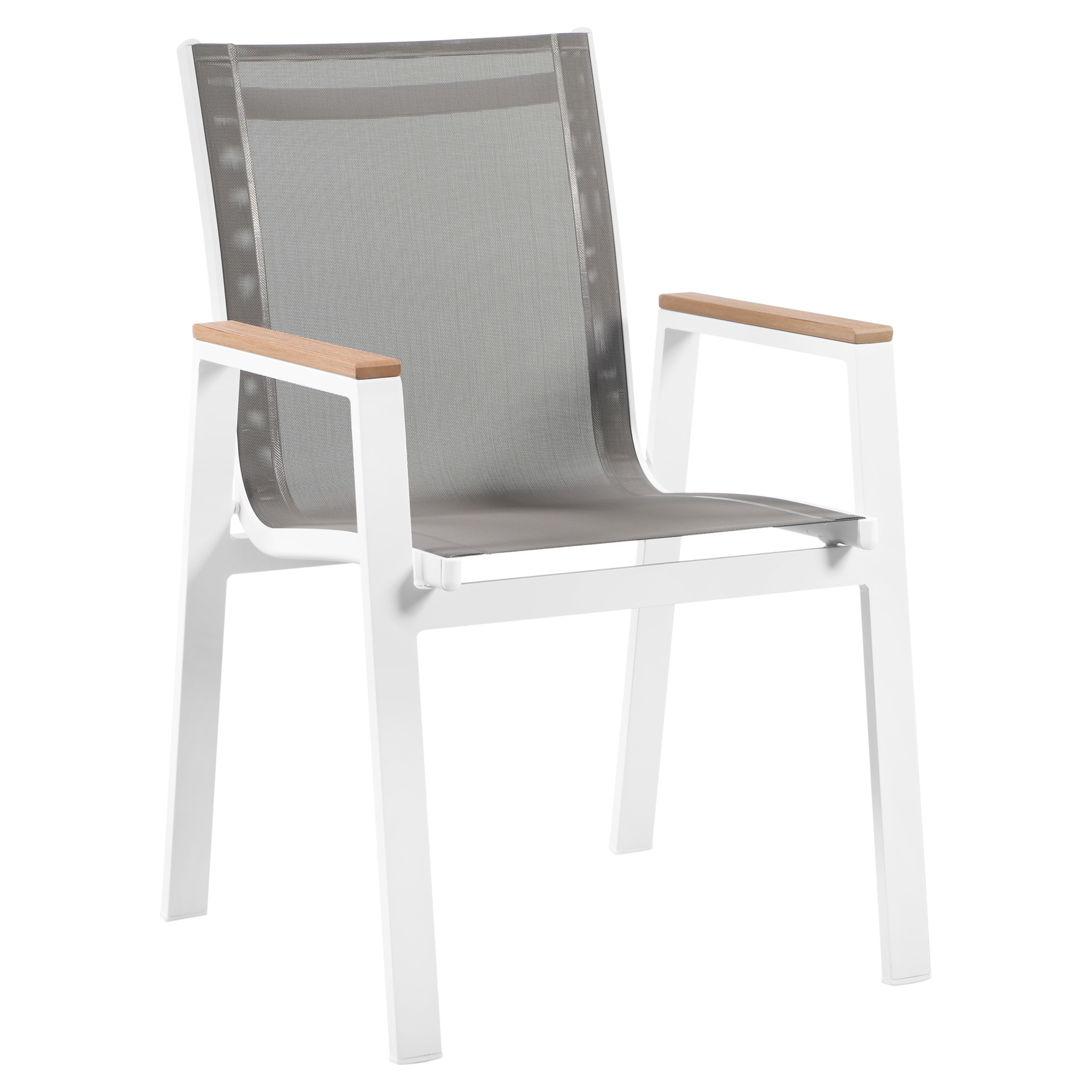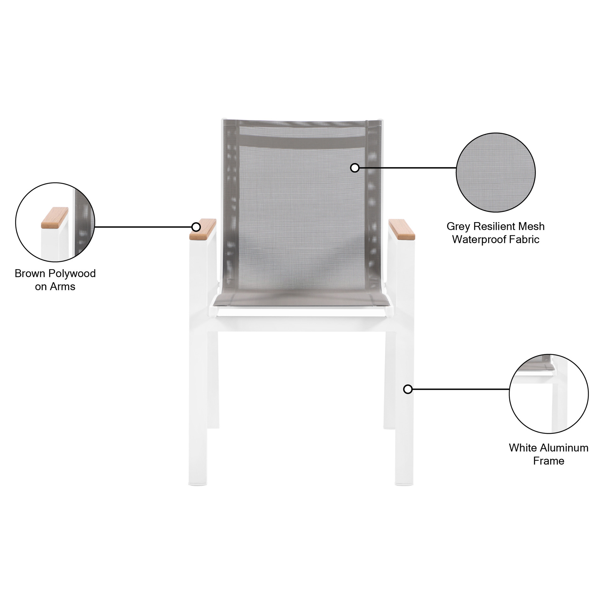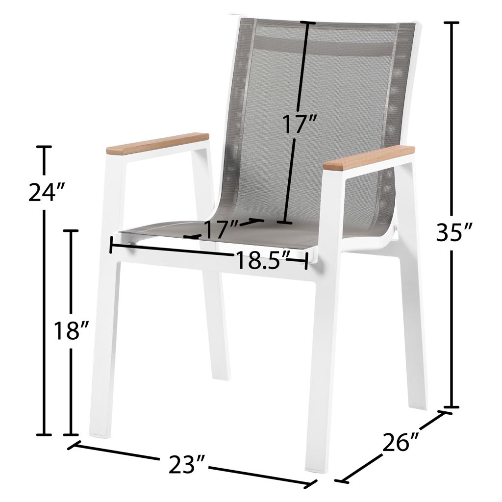 Expand your outdoor entertaining prowess with his Nizuc outdoor patio dining chair. This handsome chair features resilient grey mesh fabric that's water resistant, making it ideal for outdoor use, even in inclement weather.