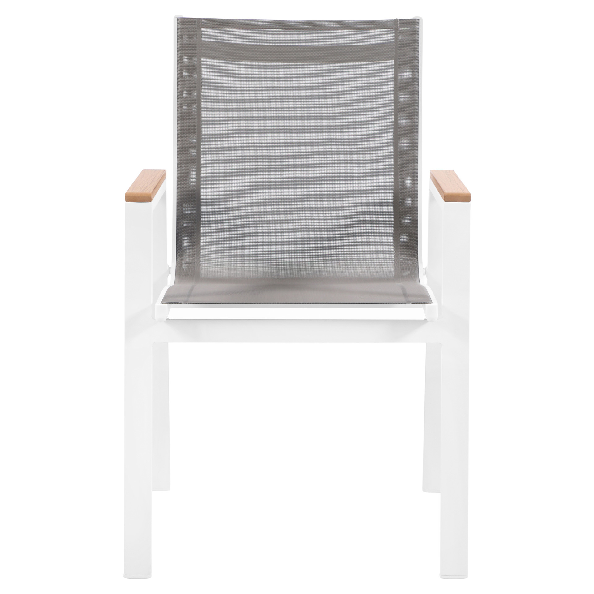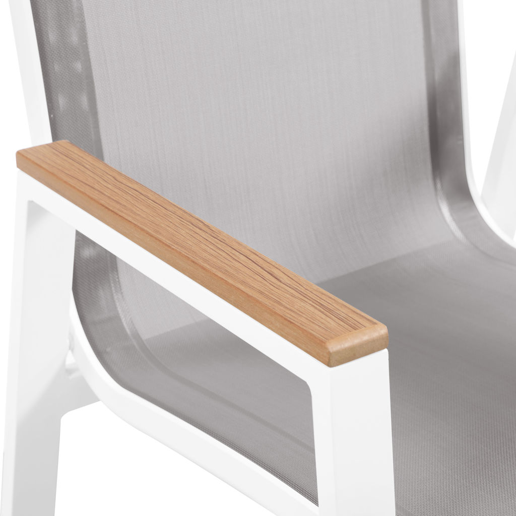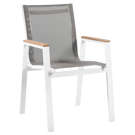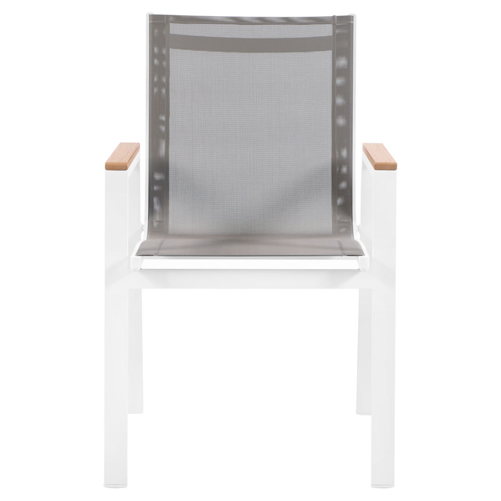 Expand your outdoor entertaining prowess with his Nizuc outdoor patio dining chair. This handsome chair features resilient grey mesh fabric that's water resistant, making it ideal for outdoor use, even in inclement weather.