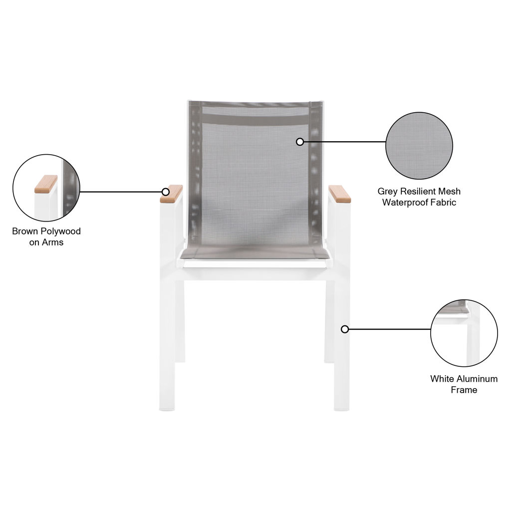 Outdoor Patio Aluminum Mesh Dining Arm Chair Meridian Furniture 365GREY-AC