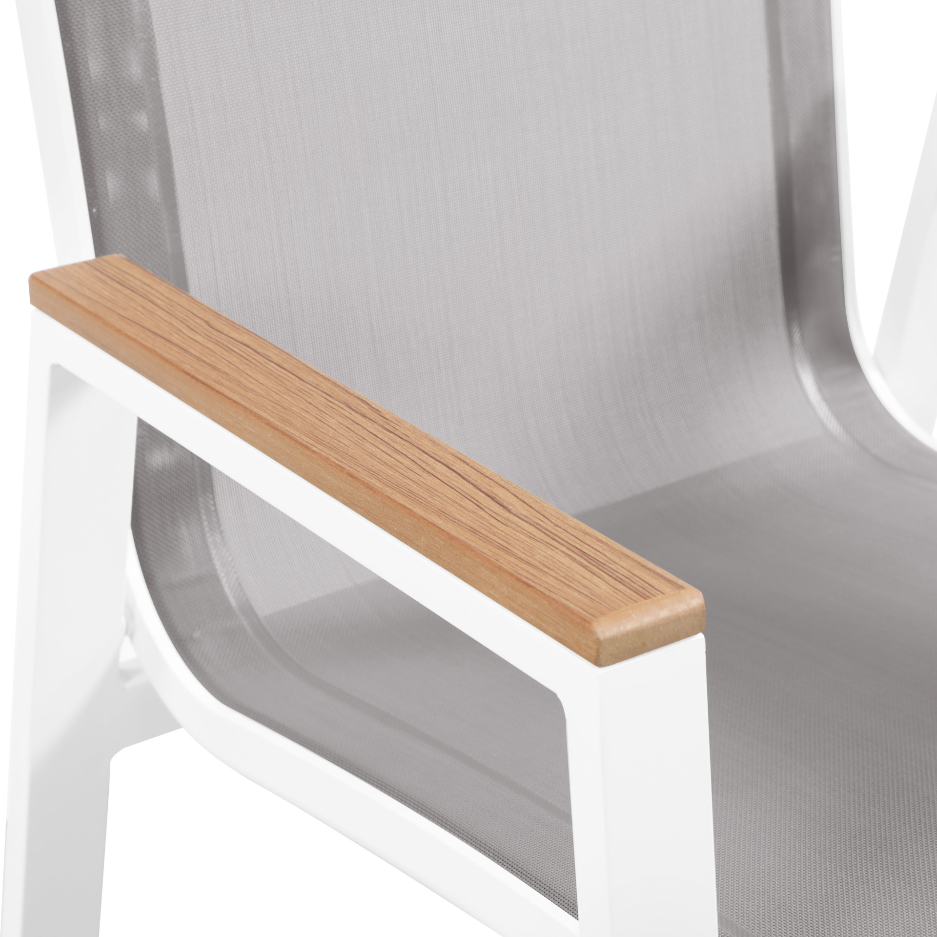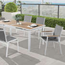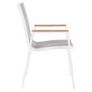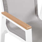 The aluminum frame is durable and tough, so you can count on this outdoor seat to withstand the rigors or use without skipping a beat. Plastic wood accent paneling trim on the arms contrasts quite nicely with the chair, lending it a modern feel.