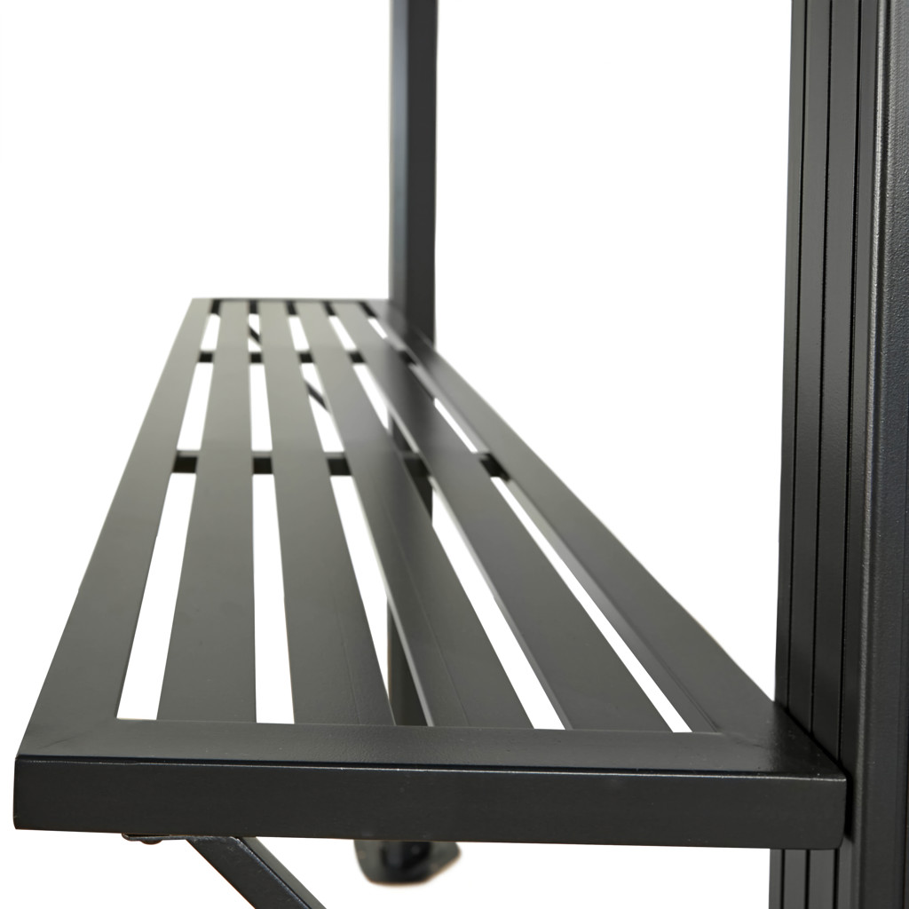 In addition, this shelter comes with 2 shelves that provide a work surface for cooking while you grill your food.