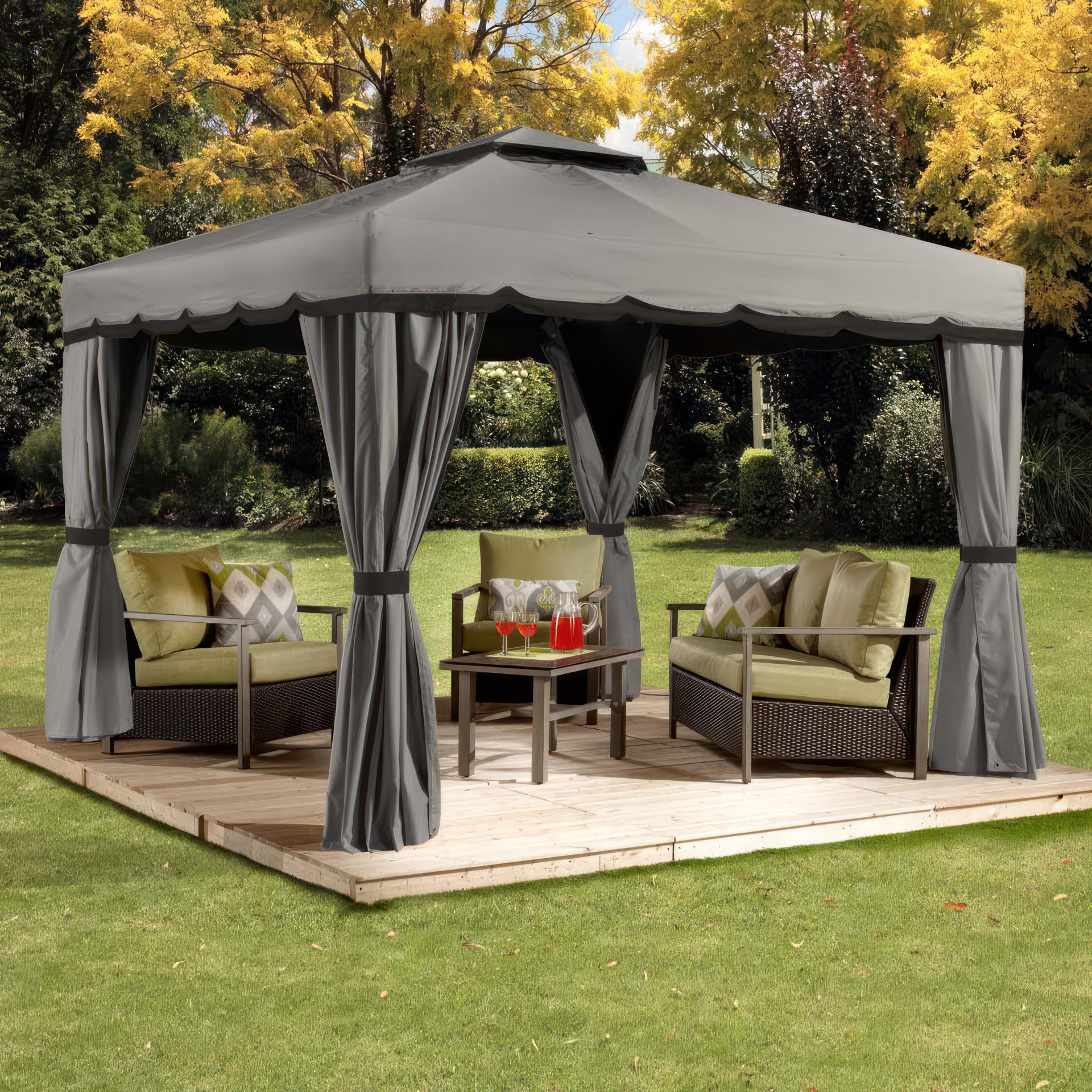 • Available in 3 sizes: 8'x8', 10'x10' and 10'x12'.
