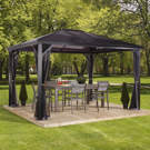 This sleek gazebo will dress up your backyard while providing protection for you and your guests. With a roof made of 6mm polycarbonate panels, the Verona gazebo provides the shade you are looking for without completely depriving you of sunlight. It will also prevent you from getting soaked during an unexpected rainfall!  If you like its style but would like a different roof material, look for the Ventura!