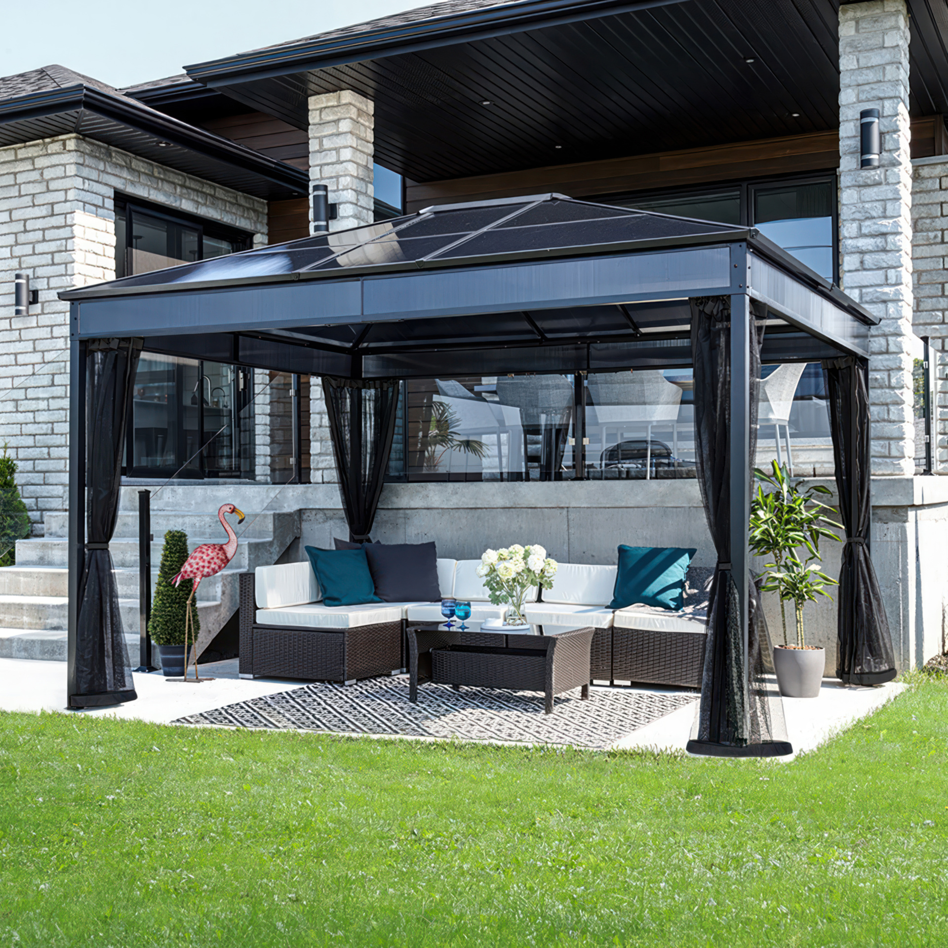 • The Diani 10 x 12 ft. Gazebo is a beautifully modern gazebo that will add to the elegance and style of your backyard.