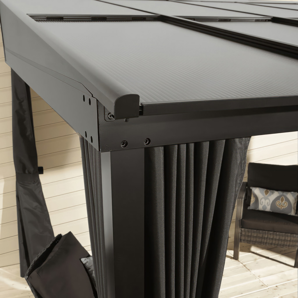 The durable aluminum frame and polycarbonate roof panels can be left outside in any season.