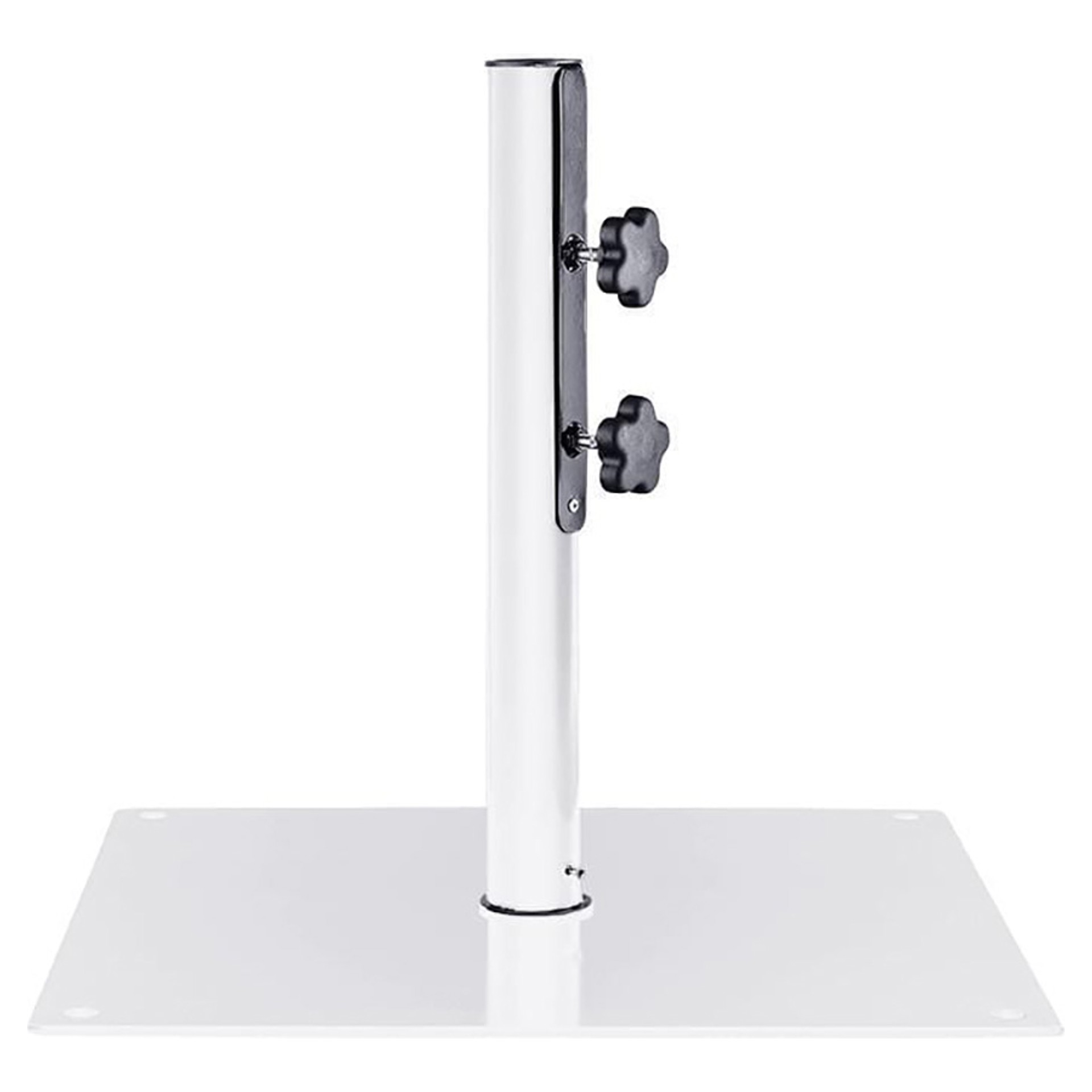The standard base is compatible with our Premium Beach and Weekend umbrellas, and is best suited to tables and protected positions. It features corner holes that allow you to bolt it to the patio or plant it in the grass for added stability.