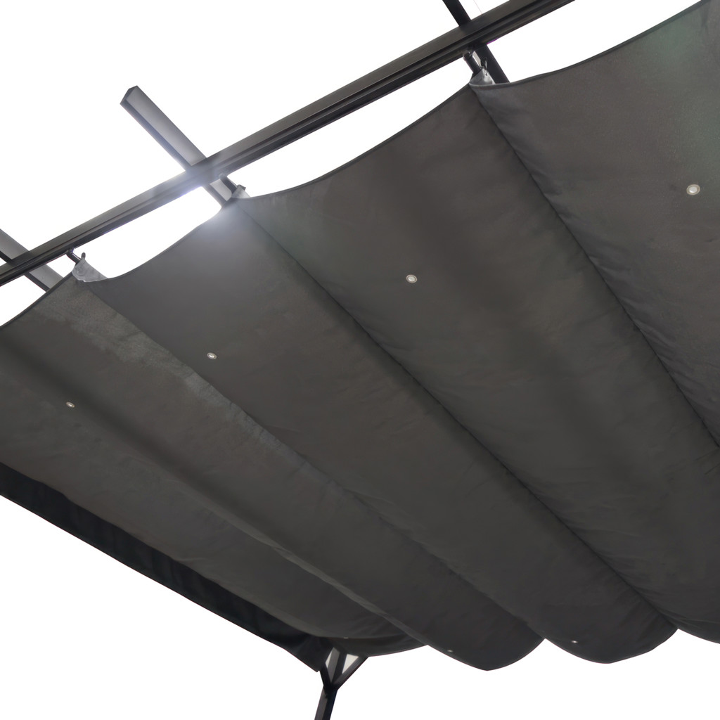 The San Luis 10'x10' pergola is ideal for sharing good times with family and friends. The retractable cover is made of polyester and allows you to adjust the amount of sunlight.