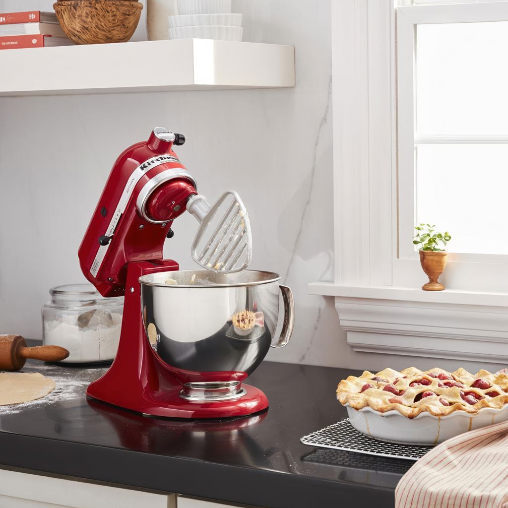 This accessory fits all 4.5 and 5 Quart KitchenAid® Tilt Head Stand Mixers* and was specifically designed for the challenging task of cutting cold butter into doughs for light and flaky pastries, which is often done by hand.
