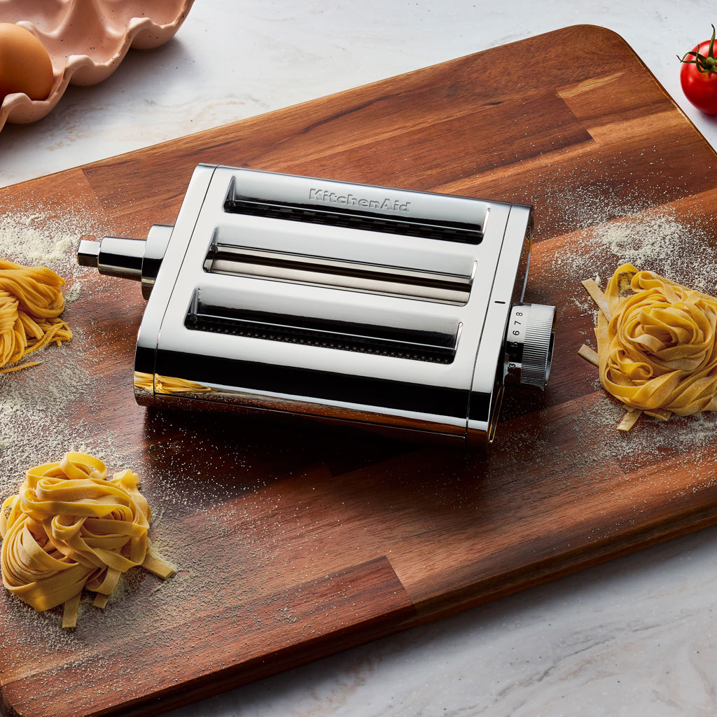 The 3-in-1 metal pasta attachment makes it easy to prepare fresh homemade pasta from scratch.