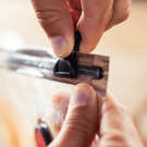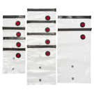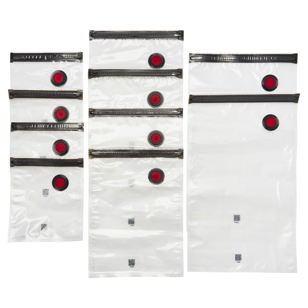 Simply fill the bag and close it with the airtight zipper. Attach the vacuum pump to the bag’s valve and, with the push of a button, remove the air in seconds.