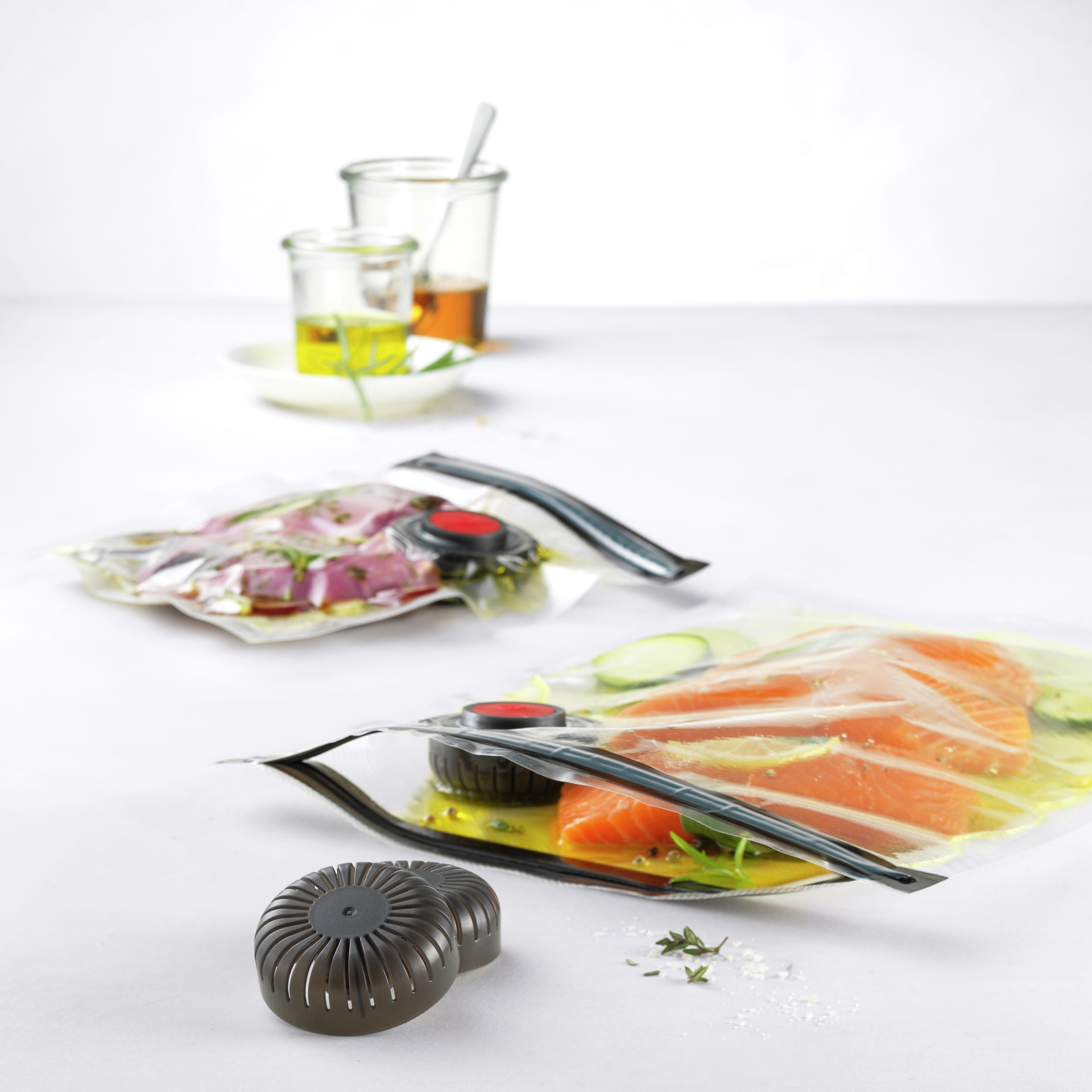 Prepare meals several days in advance and enjoy them just as fresh as the day they were made. Sous-vide cook meats or marinate for the grill in just 30 minutes using the vacuum bags and containers.
