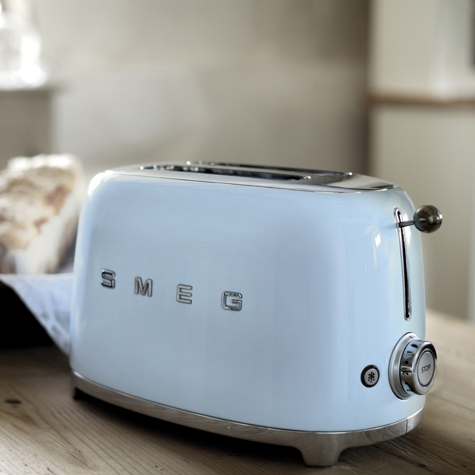 The Smeg 2-slice toaster is the perfect morning helper, offering functionality and ergonomics in its aesthetic design.