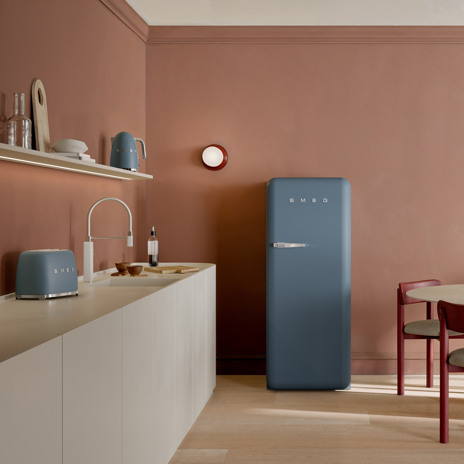 The Smeg 2-slice toaster is the perfect morning helper, offering functionality and ergonomics in its aesthetic design.