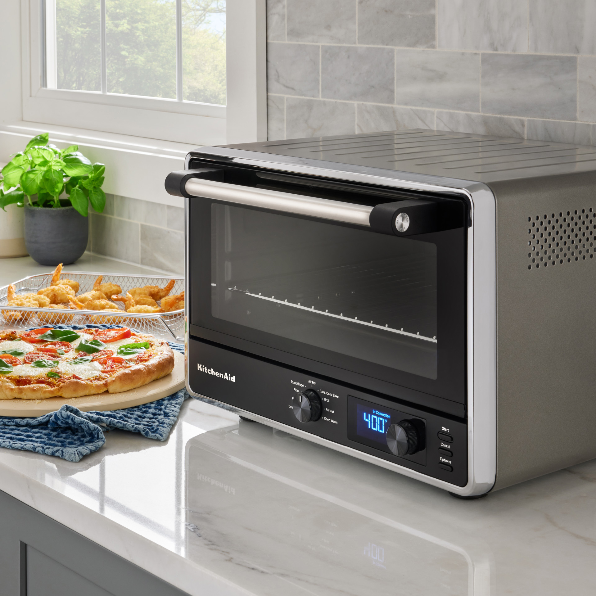 The KitchenAid® digital countertop oven with air fry and pizza functions is designed to offer endless healthy and fresh cooking possibilities.