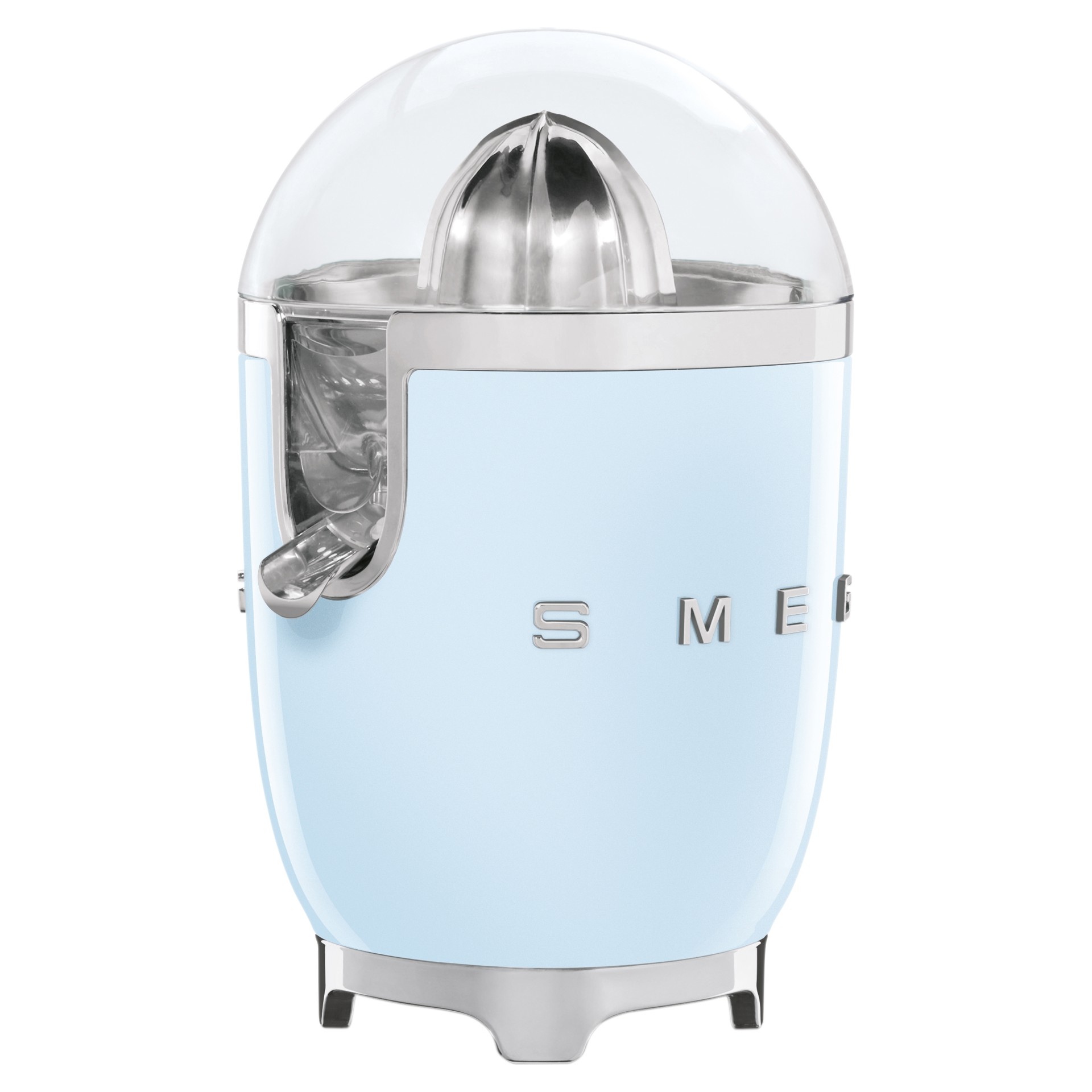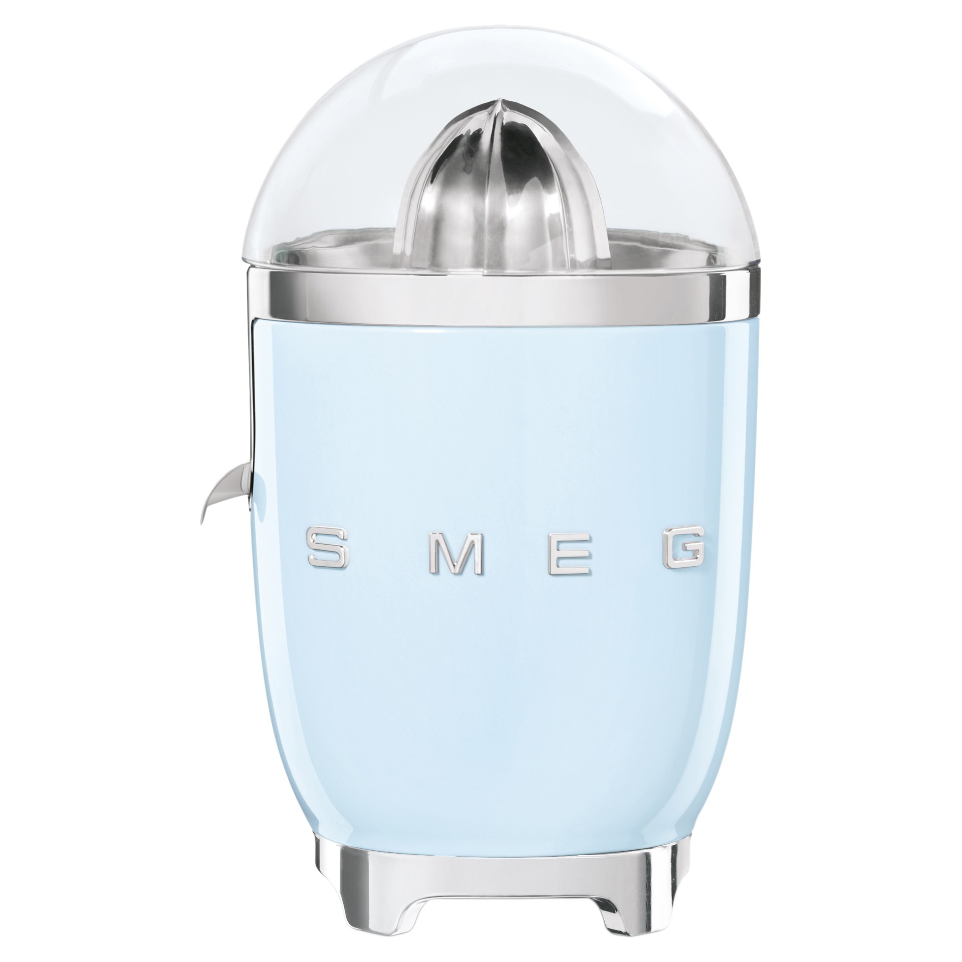 With a powder-coated die-cast aluminium body, stainless steel universal strainer, stainless steel reamer, non-drip stainless steel spout, chrome ring, and inner bowl, the Smeg juicer is built to last and never go out of style!