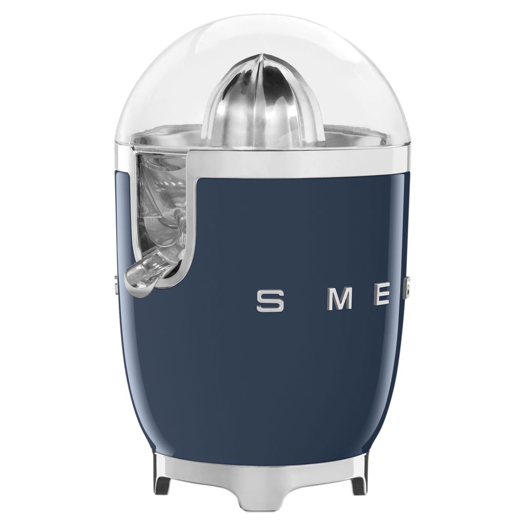 With a powder-coated die-cast aluminium body, stainless steel universal strainer, stainless steel reamer, non-drip stainless steel spout, chrome ring, and inner bowl, the Smeg juicer is built to last and never go out of style!