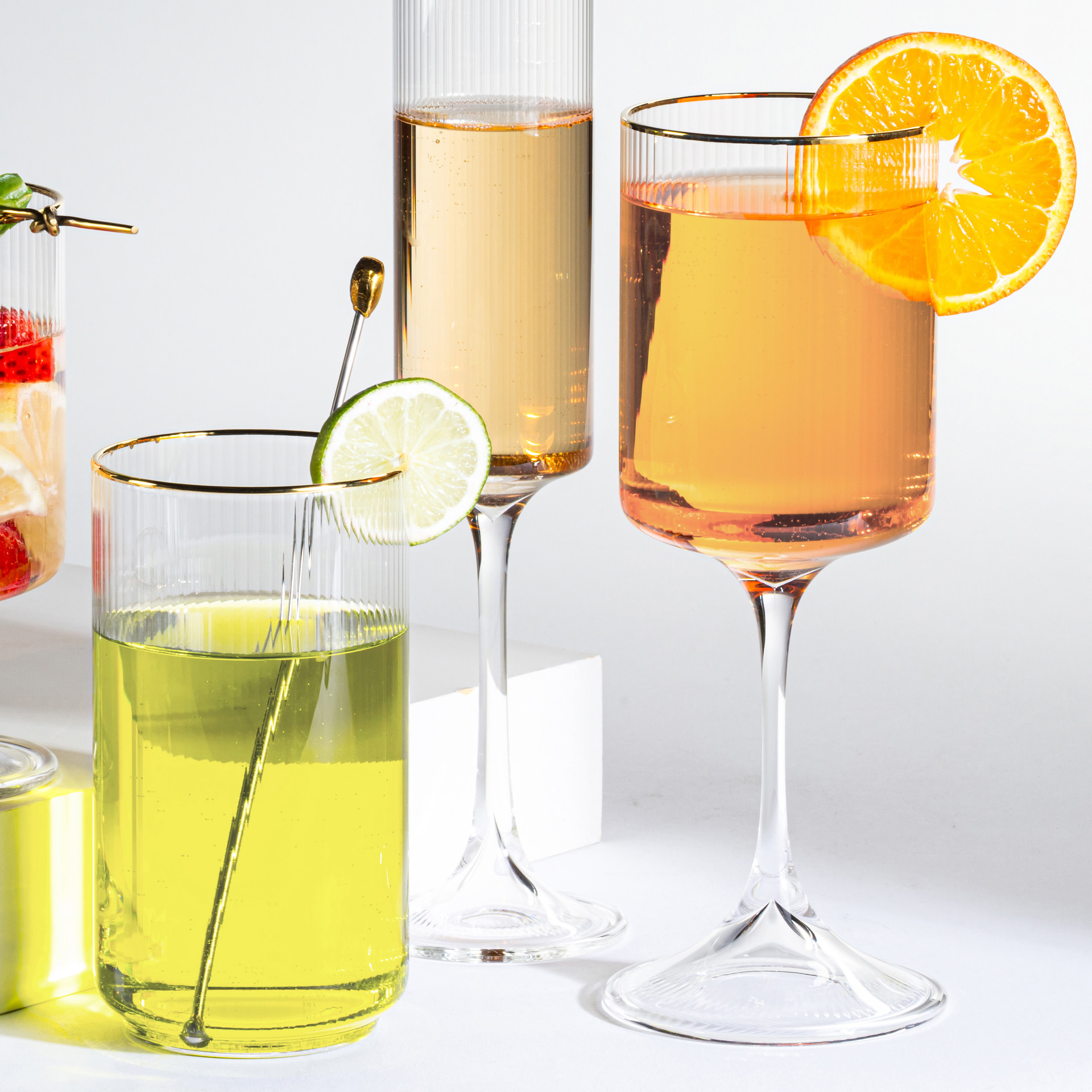 Made from special reflective glass with detailed lines and a delicate gold rim, this glass will be the centerpiece of any occasion.