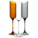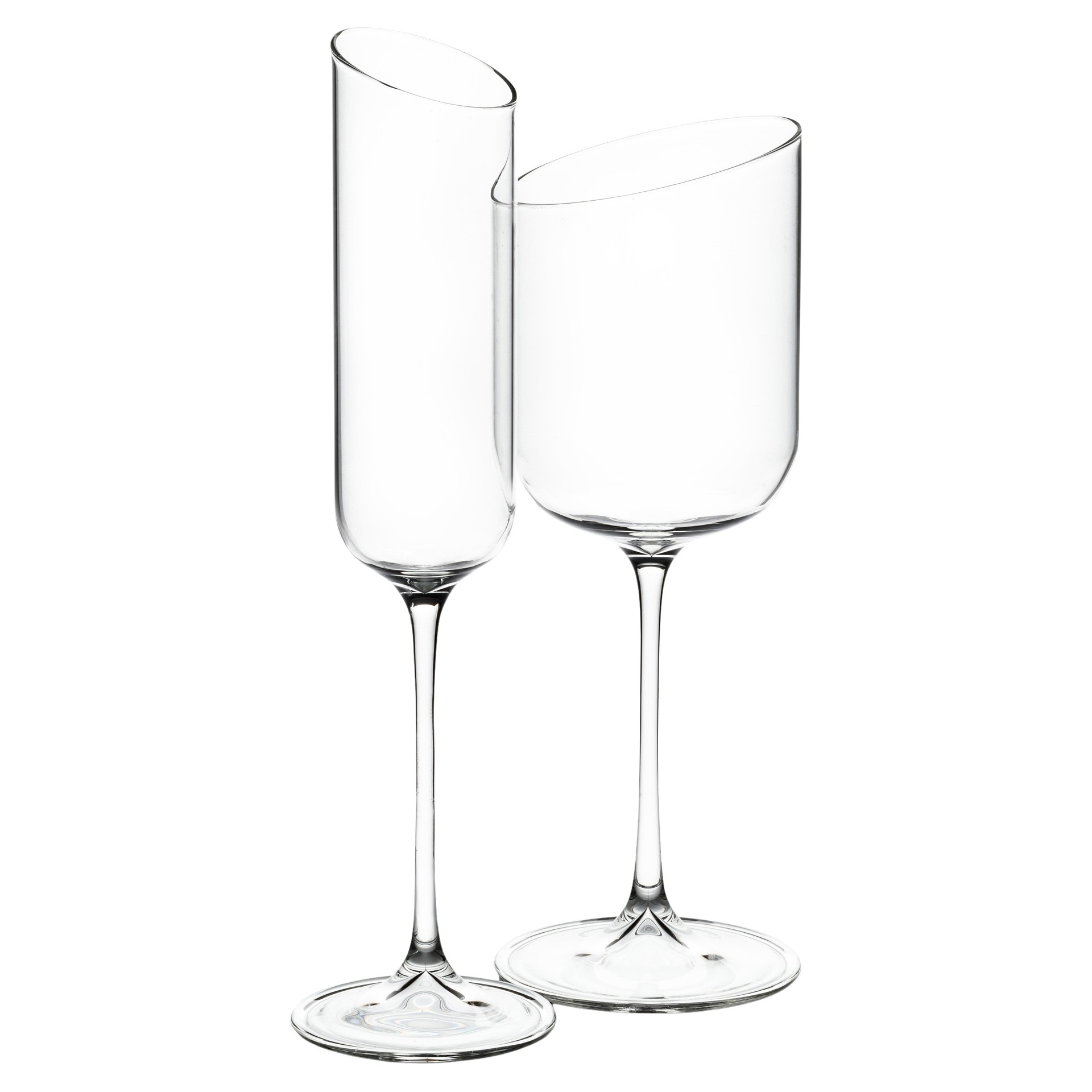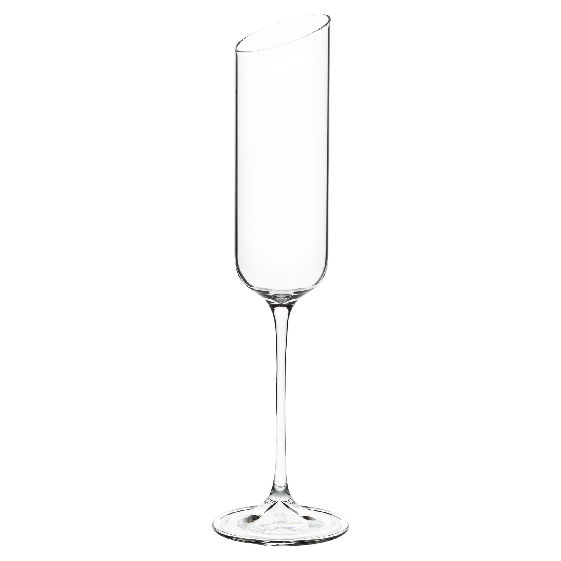 Featuring a sleek, slanted rim, these glasses offer a contemporary twist on the classic flute.