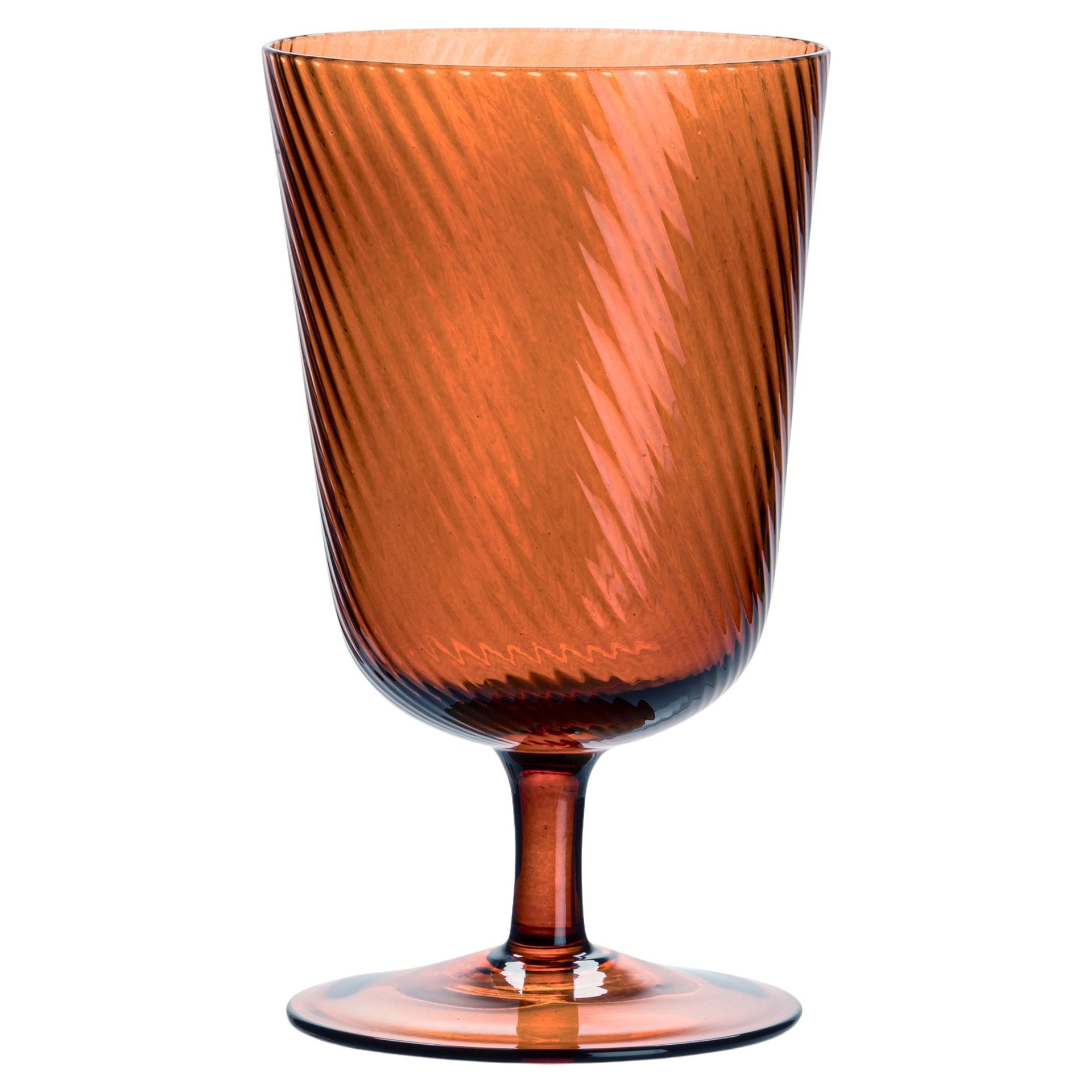 Mouth-blown and handcrafted in deep amber glass, each piece showcases a uniquely textured surface that brings character and originality to your toasts and special occasions.
