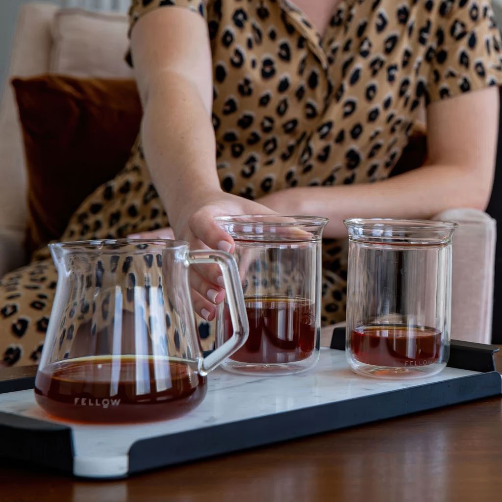 Ever see these tasting notes on bag of beans, but never understand what they're talking about? The FELLOW Stagg Tasting Glasses' unique shape will help you understand. The flared lip delivers coffee to your entire palate in order to taste the full spectrum of coffee flavours.
