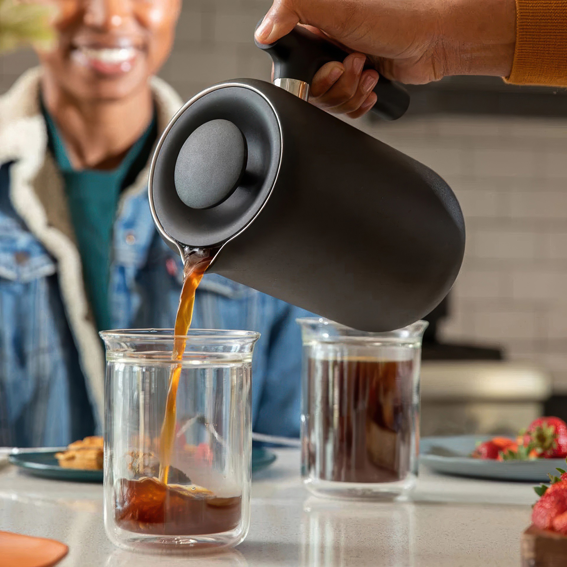 With an easy to sip single wall rim and a double wall body to keep your drinks hotter and colder for longer, these hand-blown vessels are made of durable, borosilicate glass. The outward flared lip delivers coffee to your whole tongue for more flavour. Sold as a pair, these glasses make a great gift.