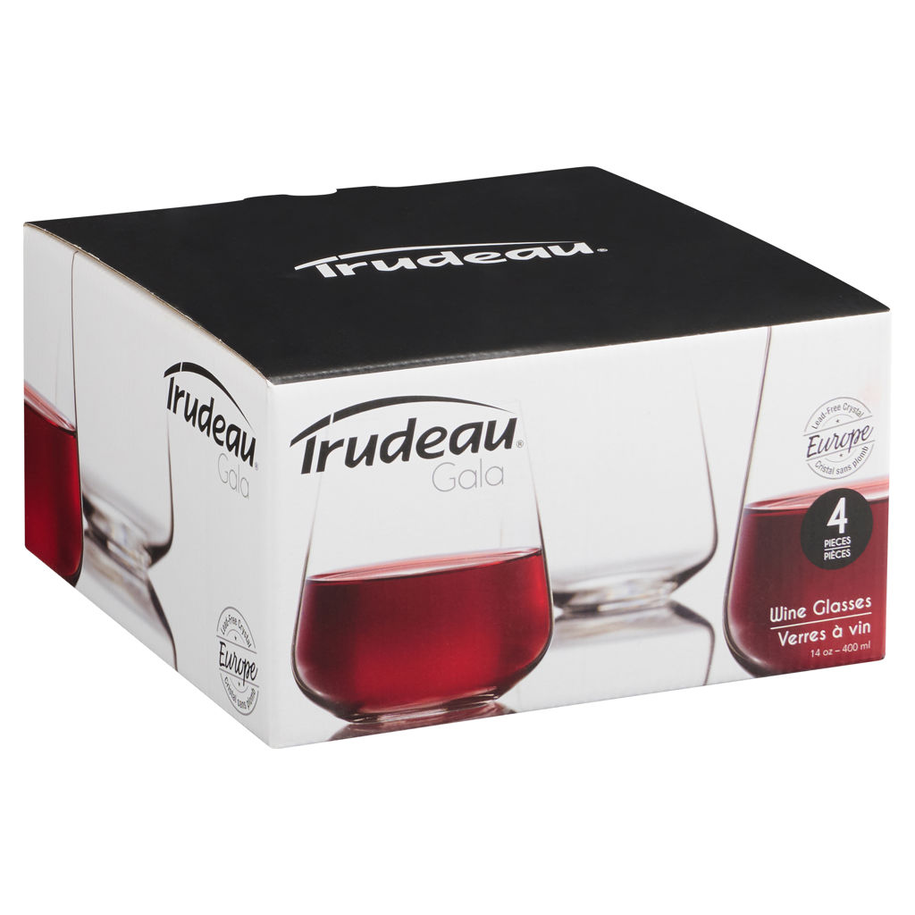 The 14 oz stemless red wine glasses by Trudeau bring style to the table while enhancing your wine tasting experience.