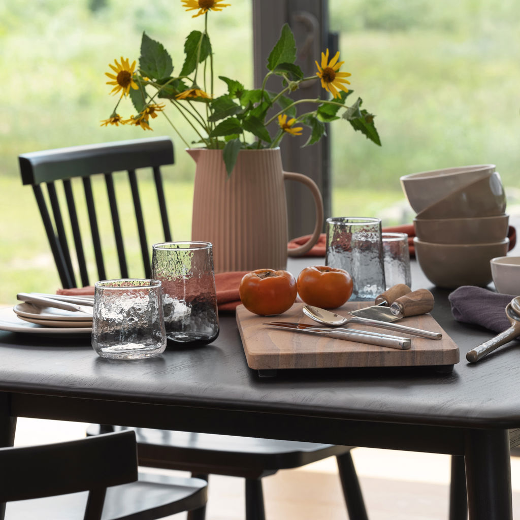 Available in tumbler and highball glass, in clear or grey glass.