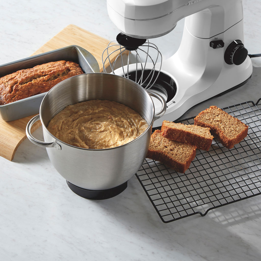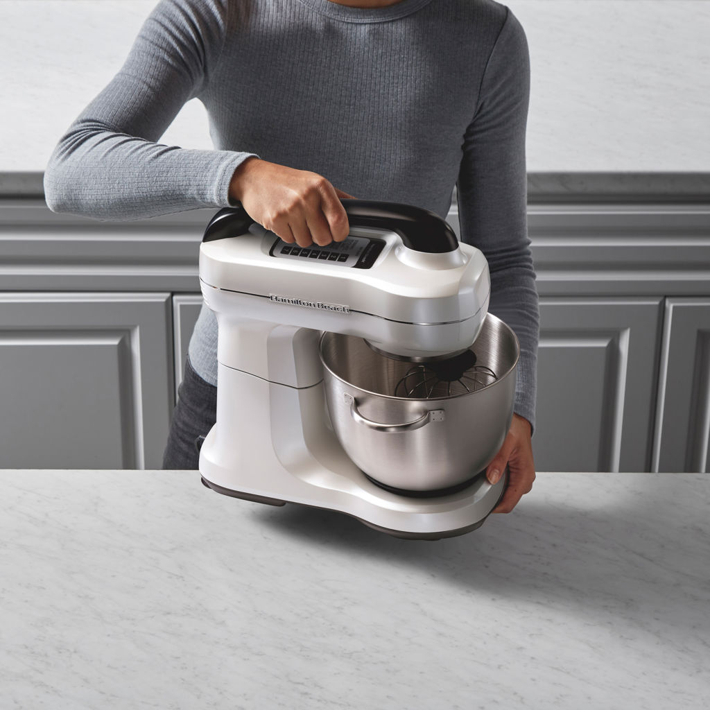Making homemade baking has never been easier. The Hamilton Beach® stand mixer effortlessly mixes ingredients for all your favorite recipes, from cake batters and frostings to dense bread doughs.