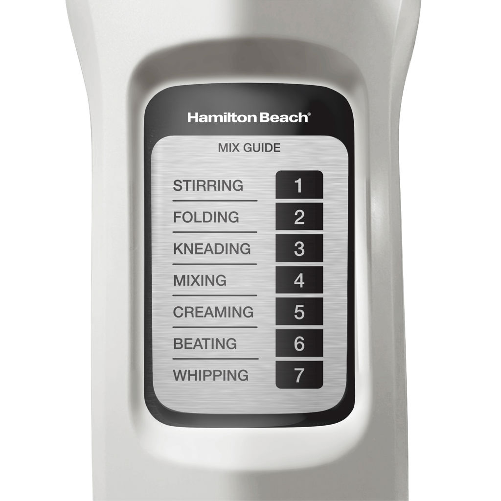 - 7 speeds with slow first speed and mixing guide