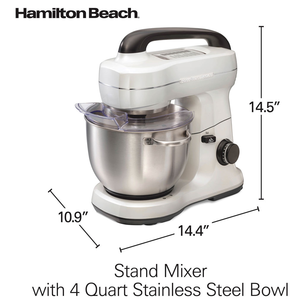 Easily mix thick doughs for bread, cookies, and more. With a powerful 300-watt motor, this Hamilton Beach stand mixer handles everything from cupcakes and cookies to homemade bread.