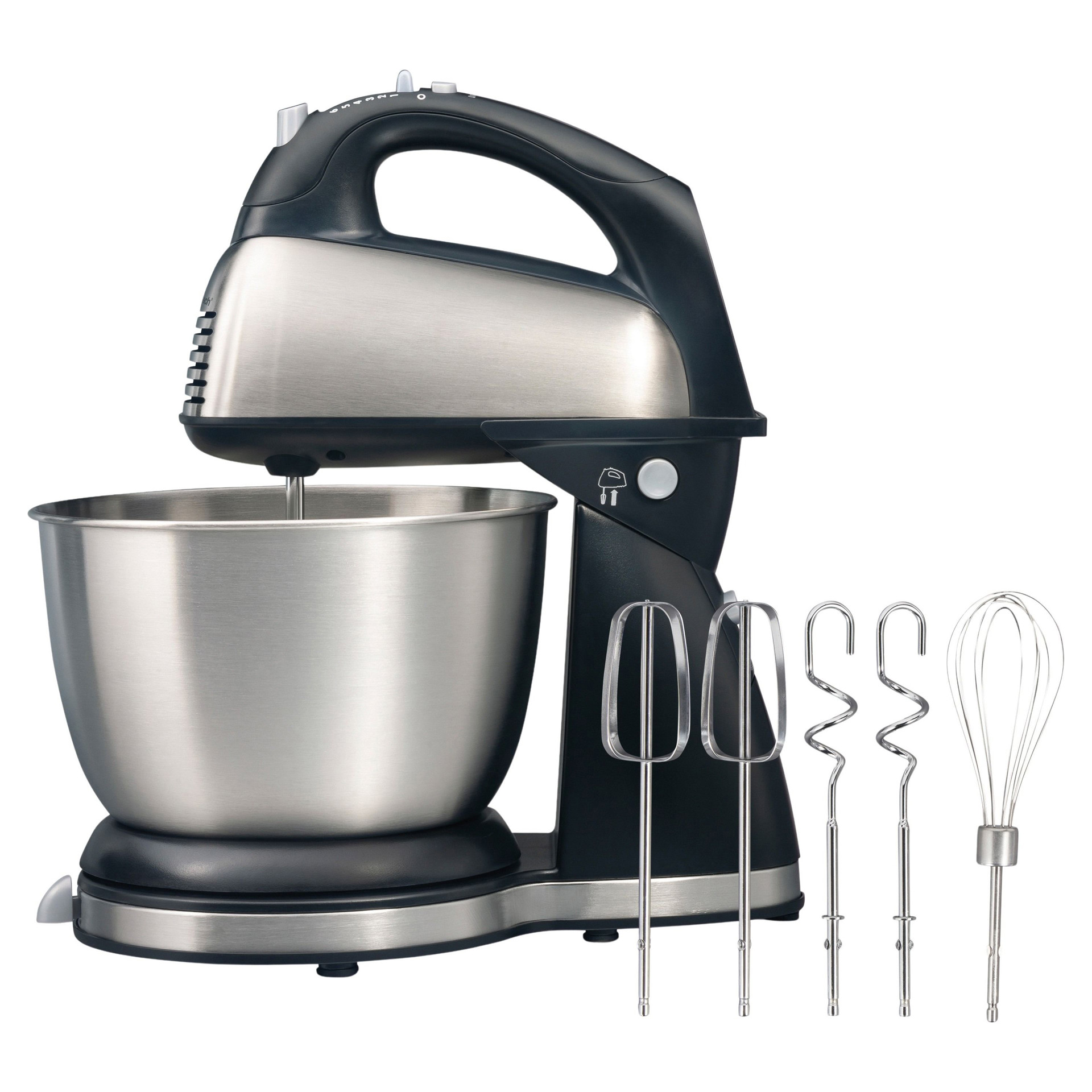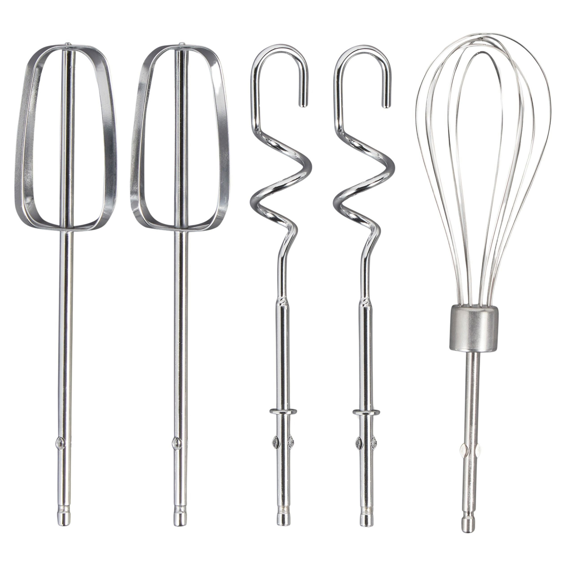 • Versatile accessory set including traditional beaters, whisk, and dough hooks