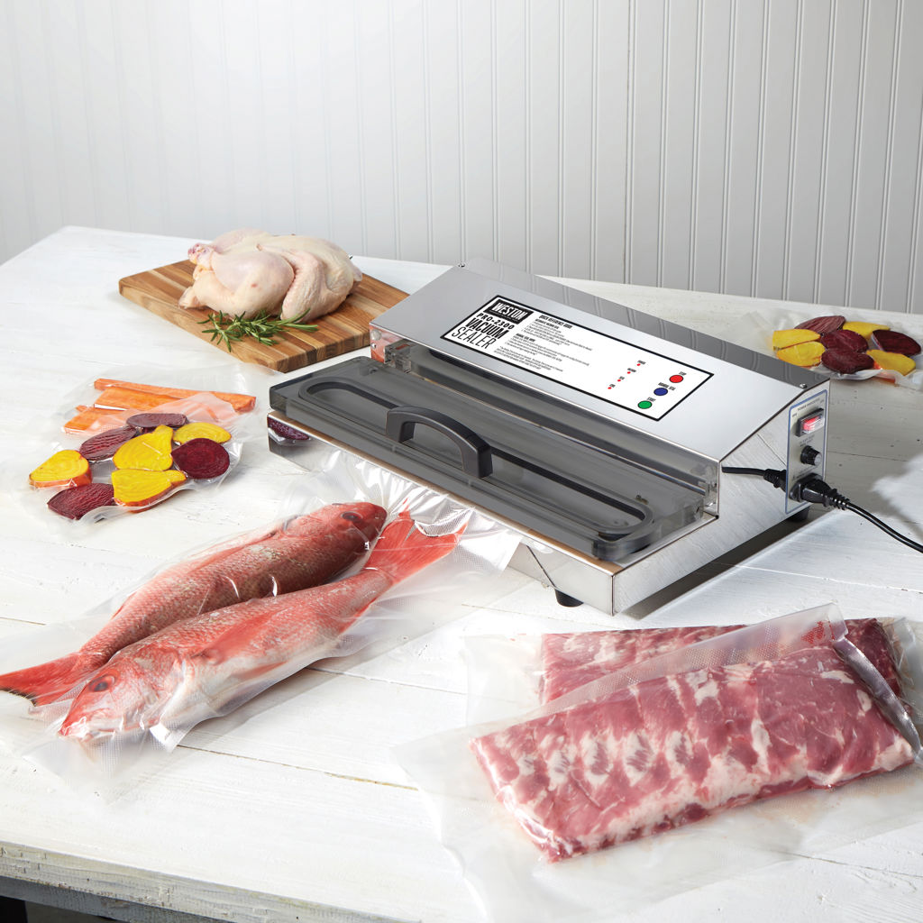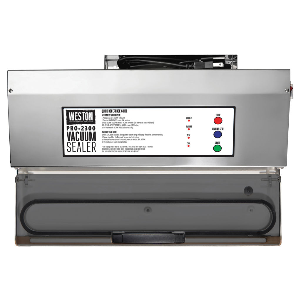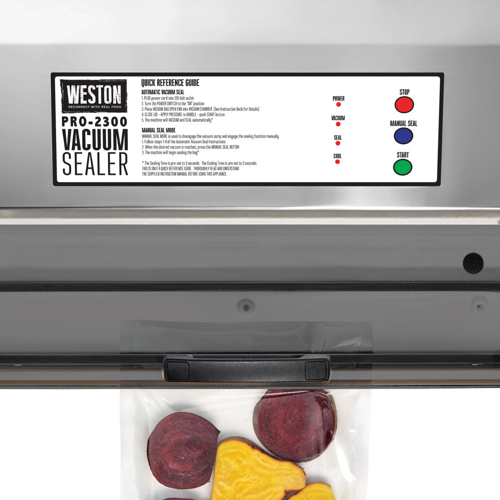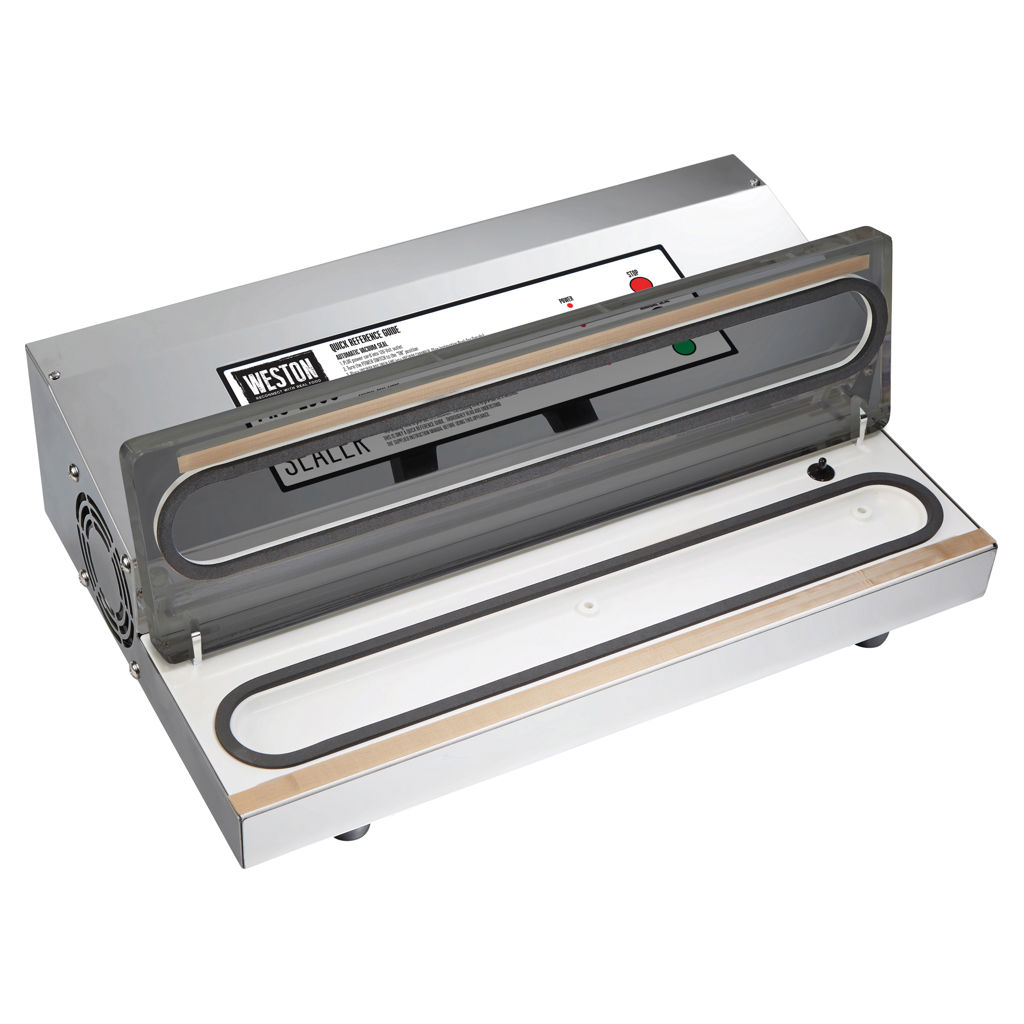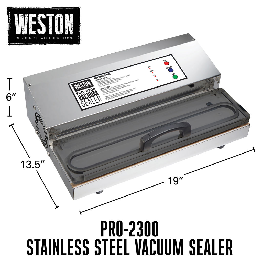The Weston® Pro-2300 stainless steel vacuum sealer keeps game, fish, fruits and vegetables, bulk foods, and leftovers fresher for longer than traditional storage methods. It features a powerful, long-lasting motor and an extra-long, extra-wide sealing bar.