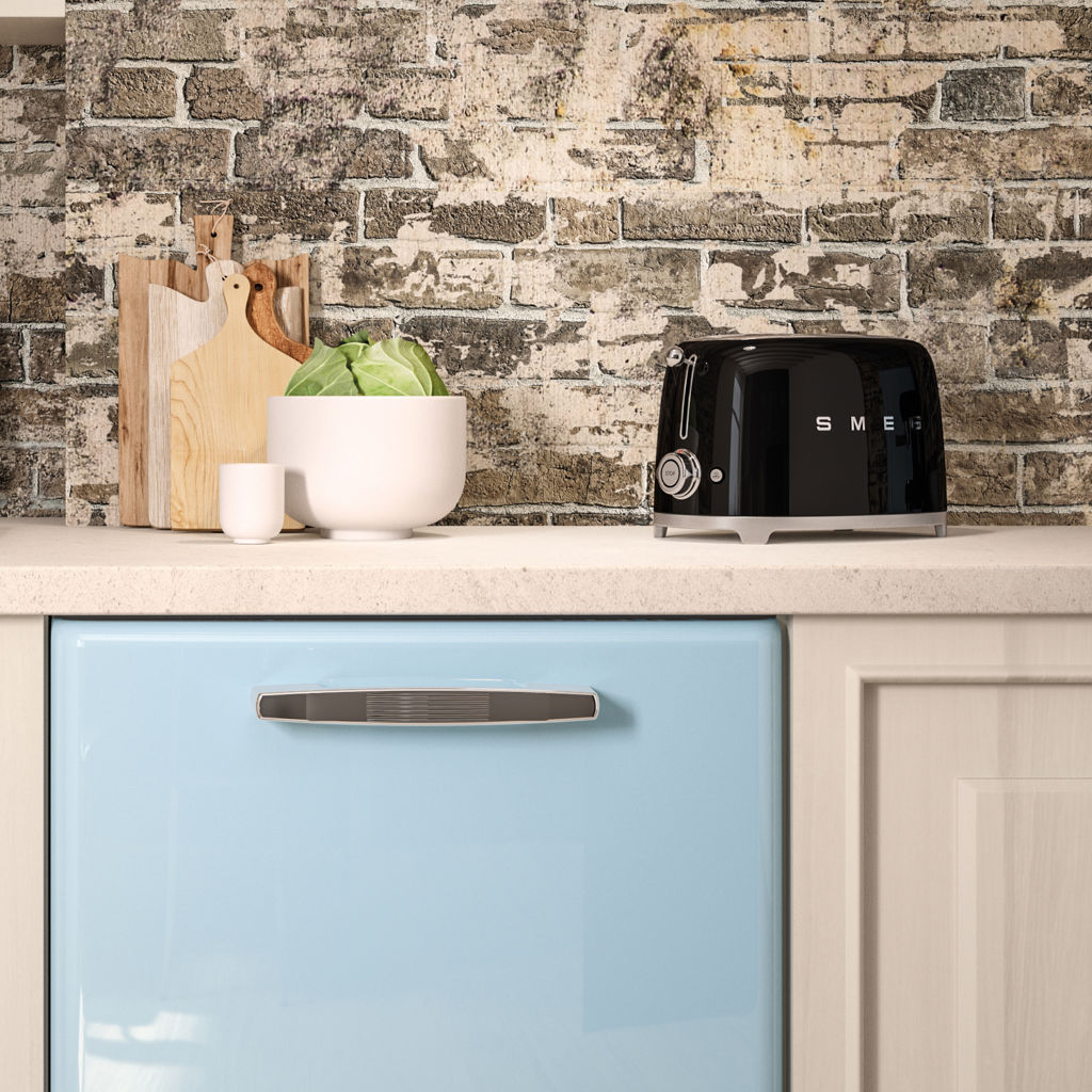 The Smeg 2-slice toaster is the perfect morning helper, offering functionality and ergonomics in its aesthetic design.