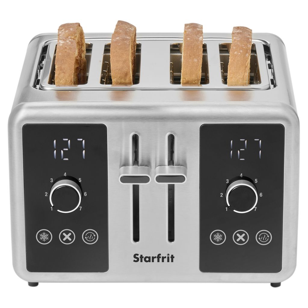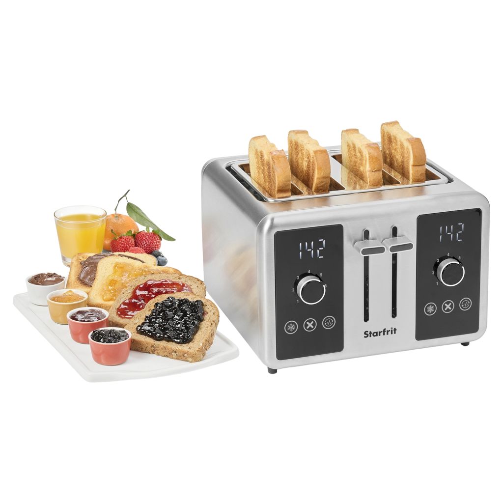 • 4 extra-wide, self-centering slots designed for bagels and thick bread