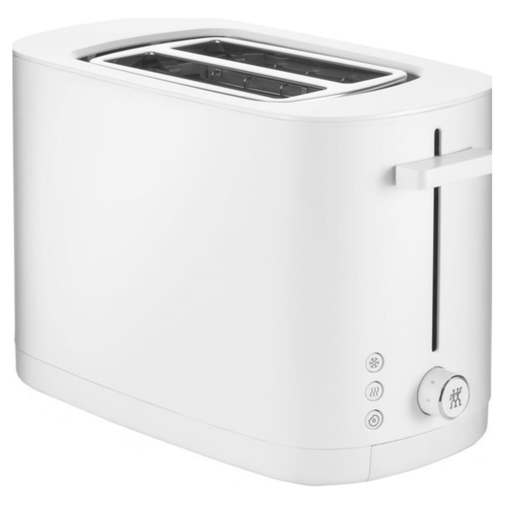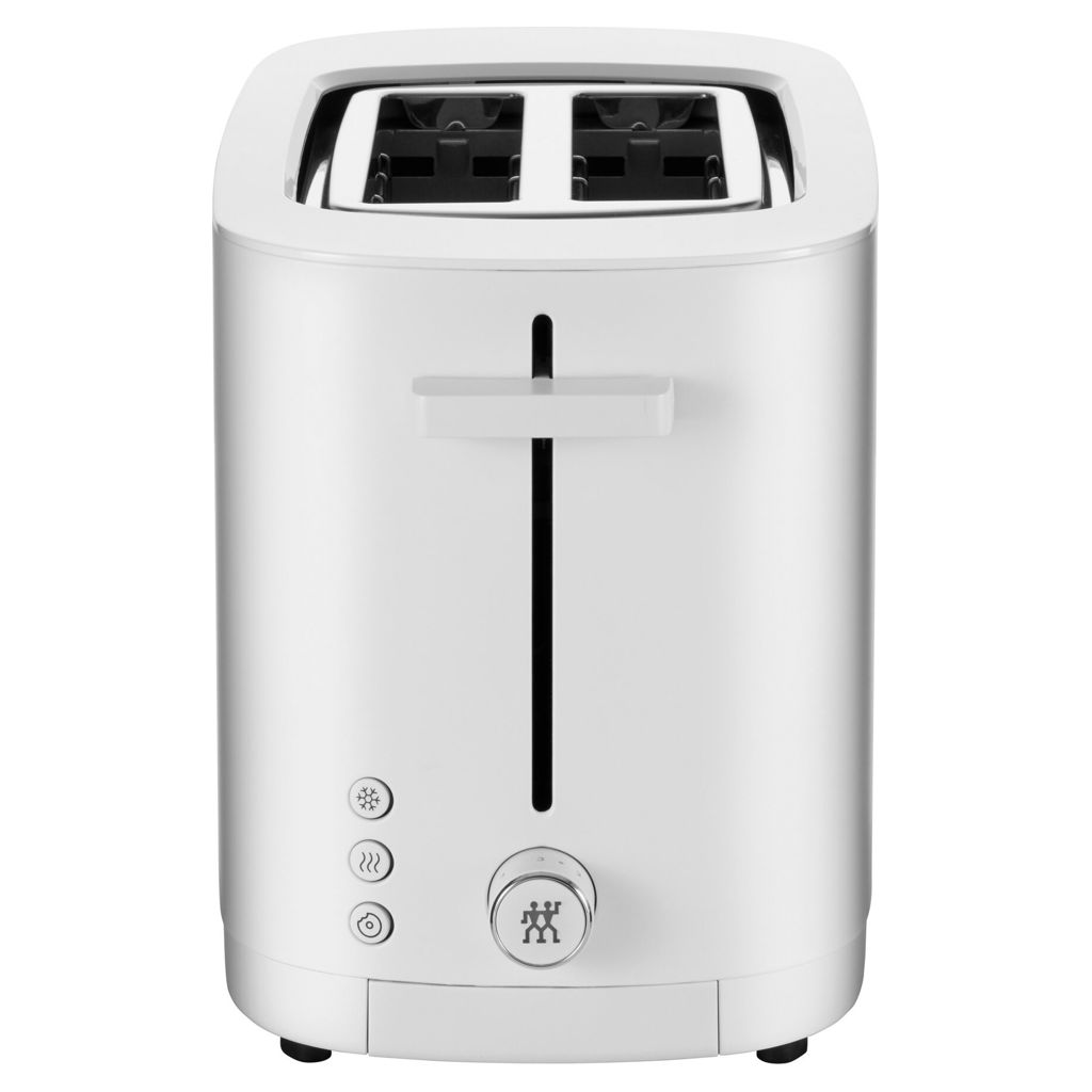 The ZWILLING premium two-slice modern design toaster always guarantees evenly browned toast, even when toasting repeatedly. It automatically shortens the toasting time to achieve the desired browning. The four separate heating elements of the 1,000W toaster evenly toast both sides of each slice. The result is crispy on the outside and soft on the inside - authentic ZWILLING toast.  When it's done, the toast doesn't fly out of the toaster. The soft lift function ensures that they slide gently upward and the built-in extra lift function makes it easy to remove even smaller slices from the toaster.