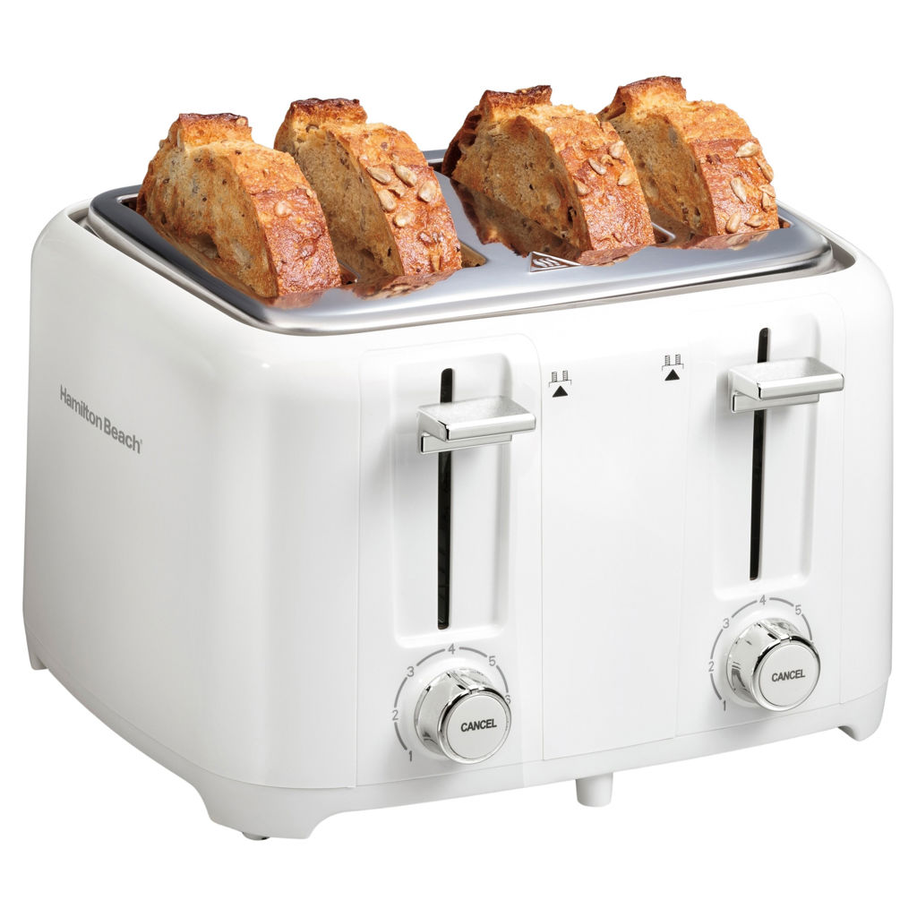 With the Hamilton Beach® 4-slice toaster with extra-wide slots, easily toast thick breads like sandwich bread and bagels. Enjoy perfectly toasted results every time for snacks or meals. From smoked salmon bagels at breakfast to roast beef sandwiches at dinner, let your creativity shine with this wide-slot toaster.