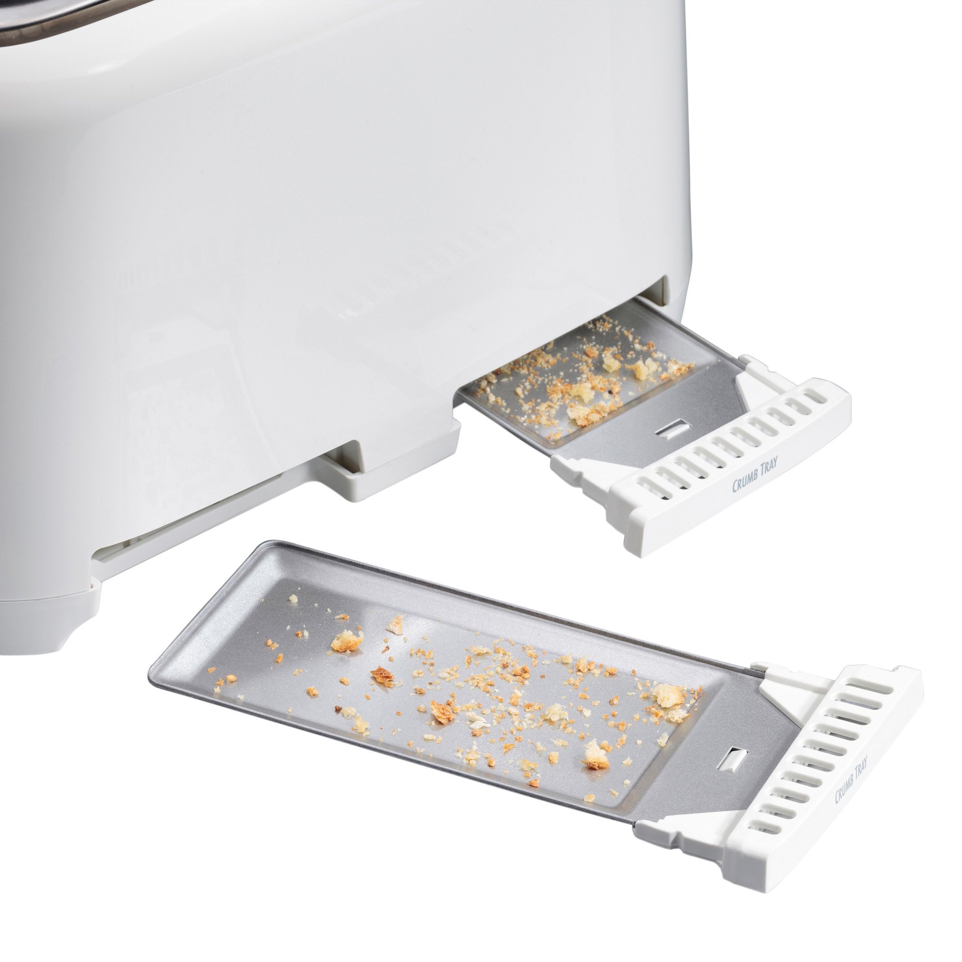 Two slide-out crumb trays collect crumbs and keep your countertop clean. Simply slide them out to empty.