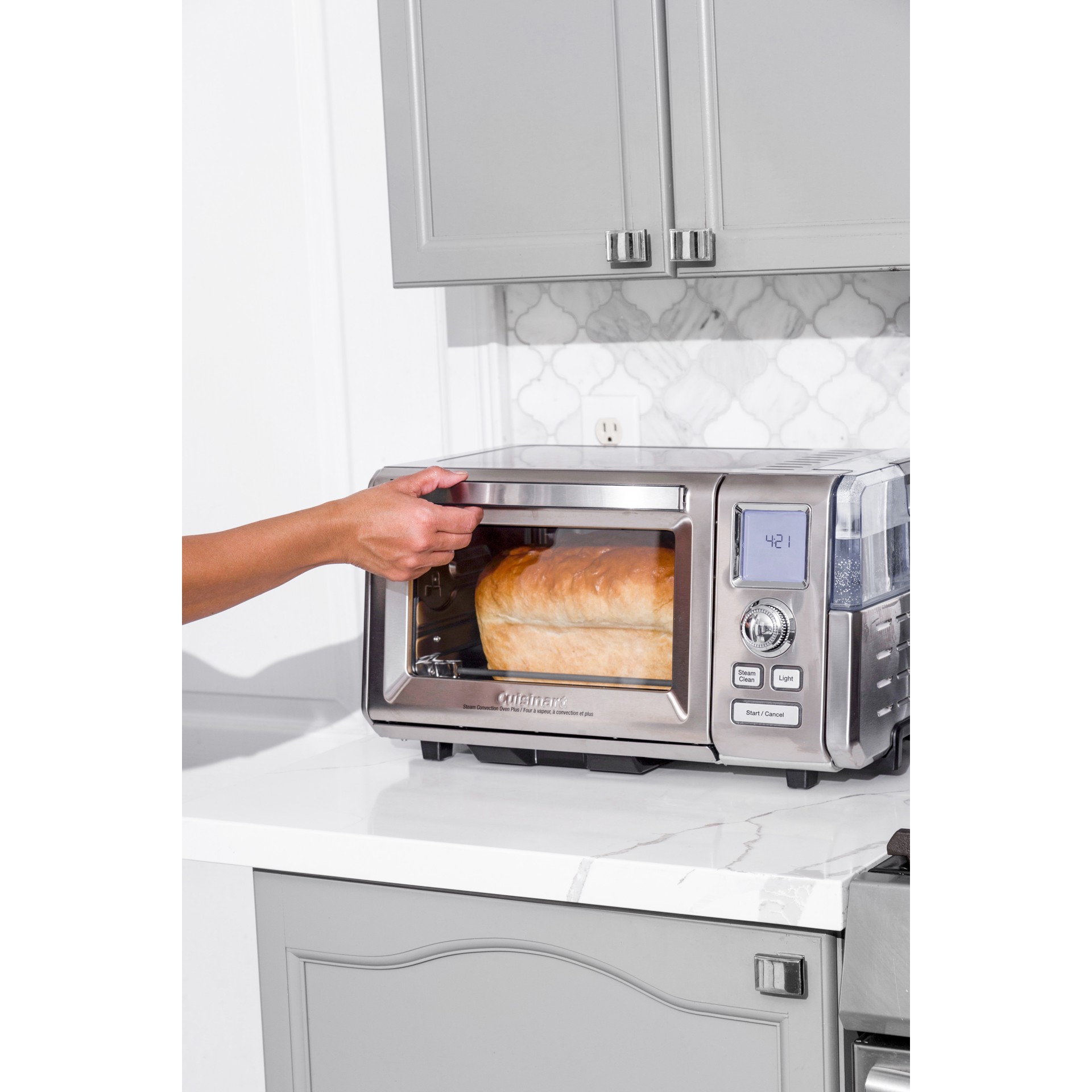 Bread function simulates a professional bread oven on your countertop. An initial blast of steam followed by convection baking yields professional results every time with crispy crusts and perfectly risen interiors.
