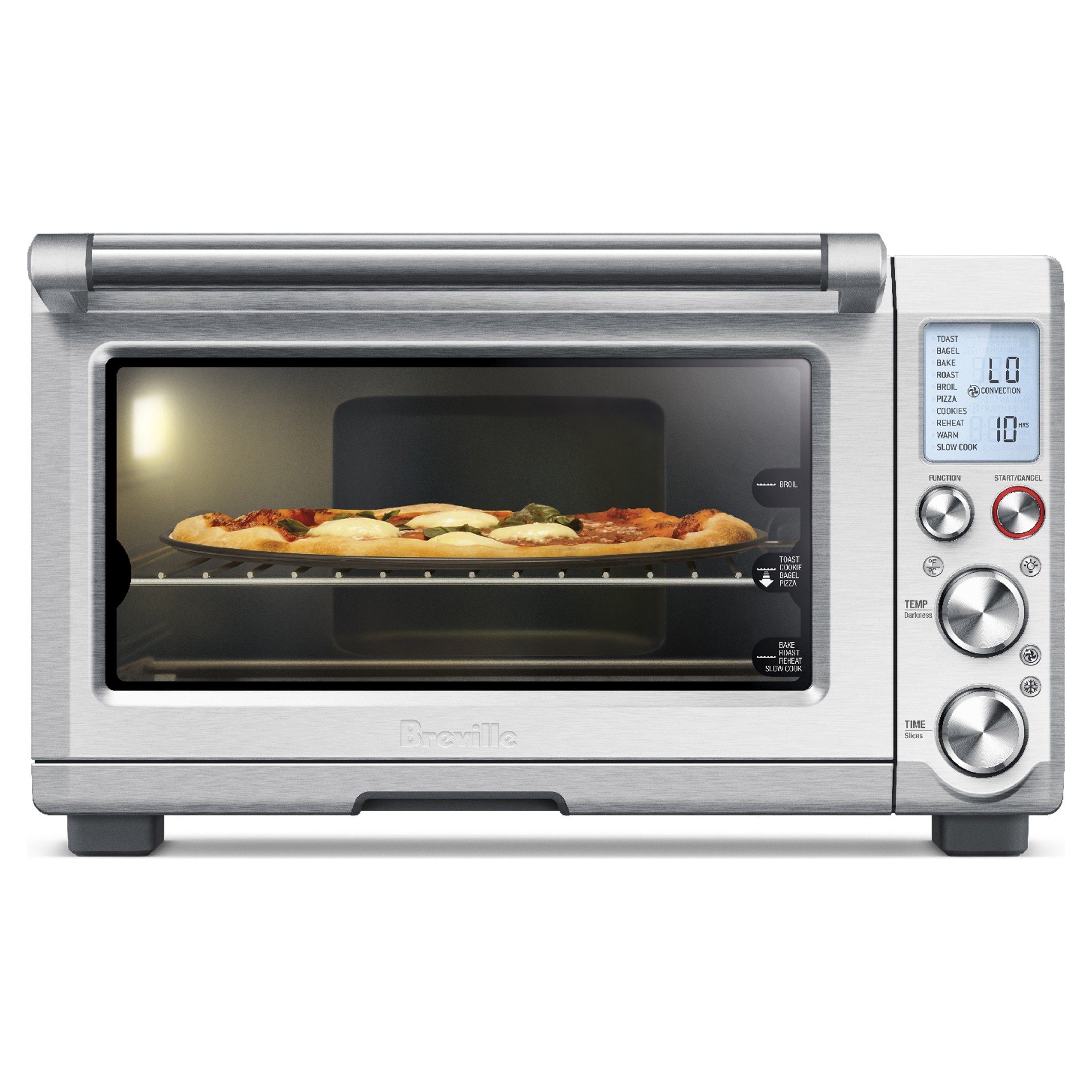 10 cooking functions to guide you to convenient, excellent cooking: toasting, bagel, baking, roasting, pizza, cookies, reheating, simmering and more.