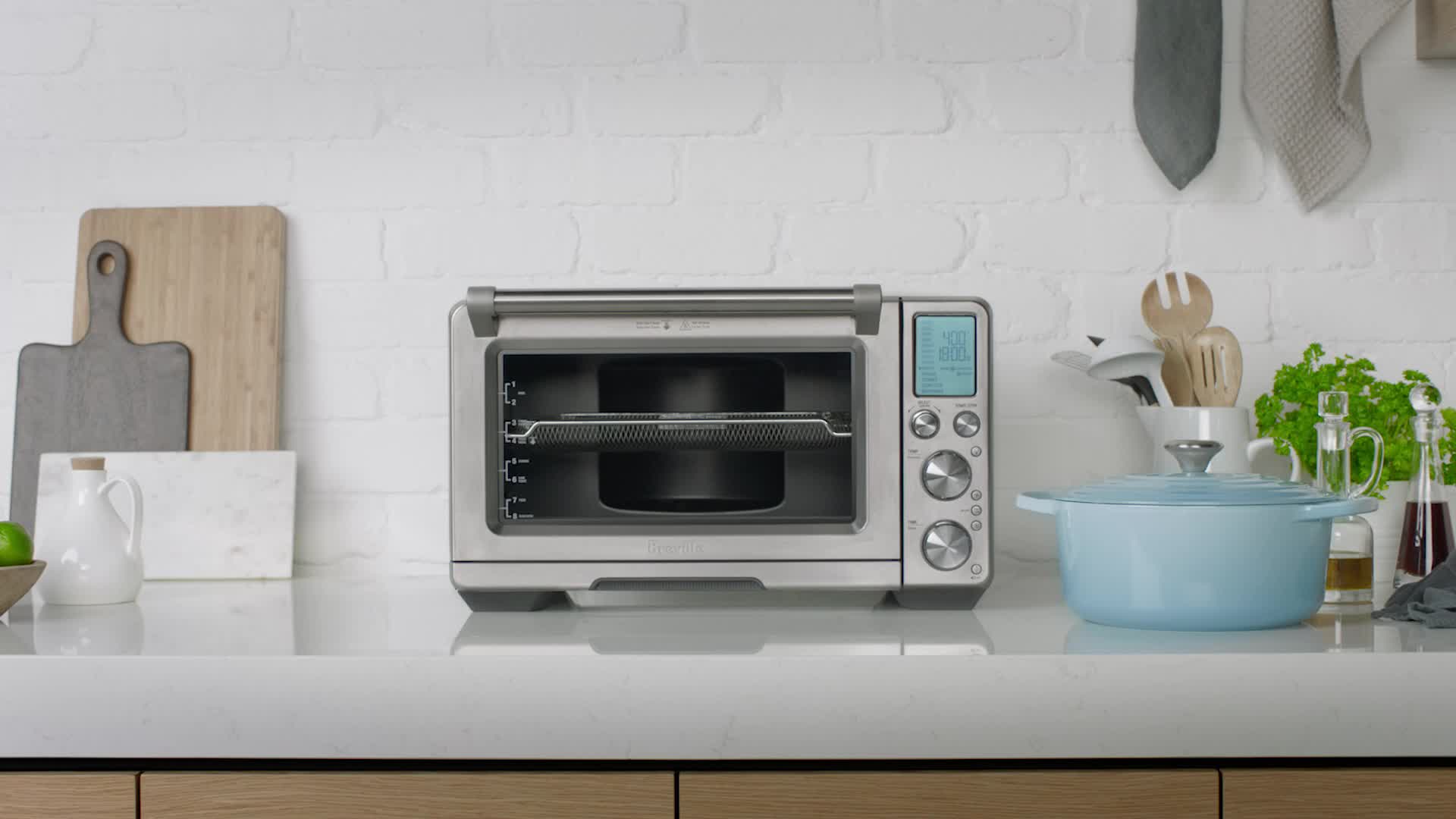 The convection setting reduces cooking time by up to 30%. Enjoy the confidence of cooking with Breville+. The complete experience is free when you register your oven.