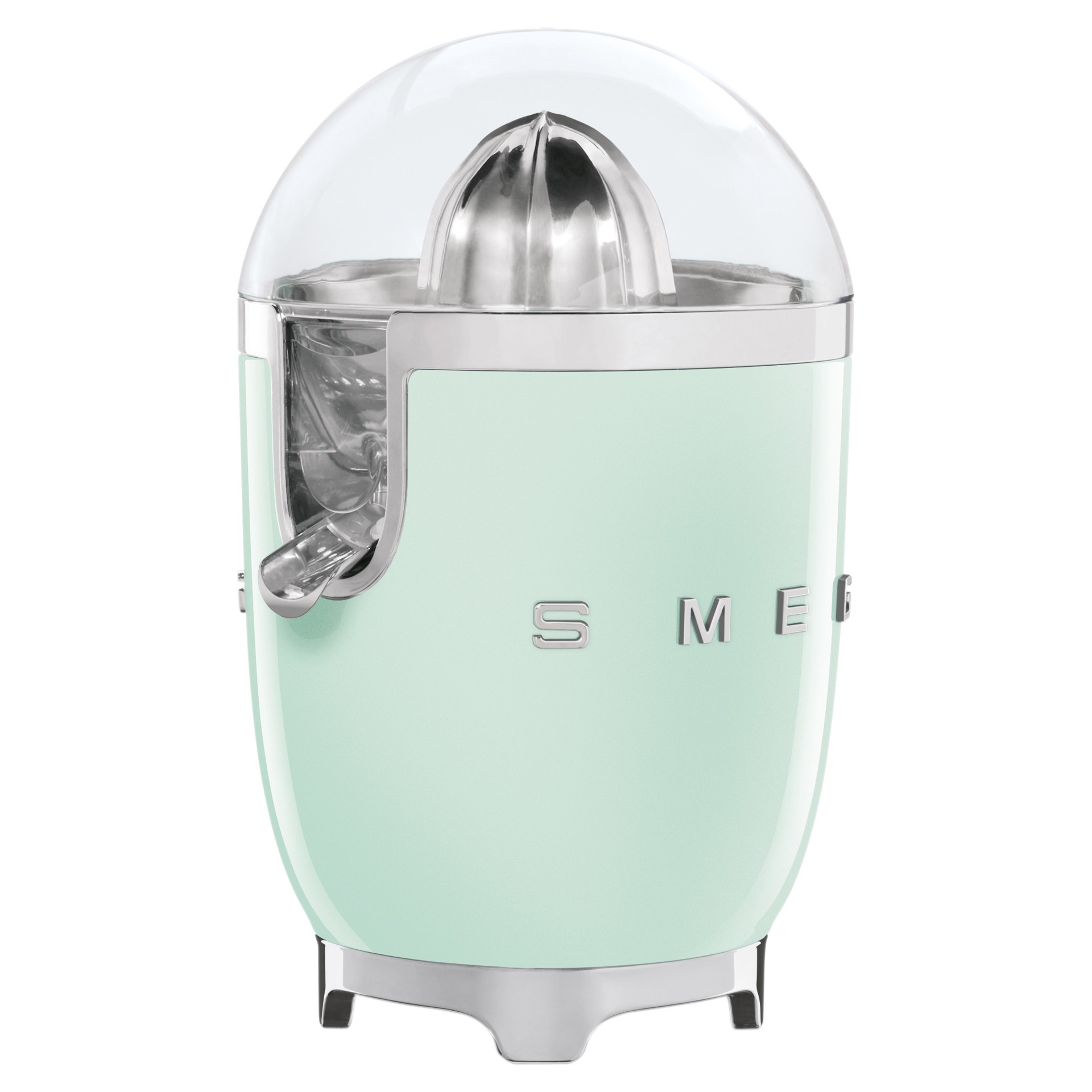 With a powder-coated die-cast aluminium body, stainless steel universal strainer, stainless steel reamer, non-drip stainless steel spout, chrome ring, and inner bowl, the Smeg juicer is built to last and never go out of style!