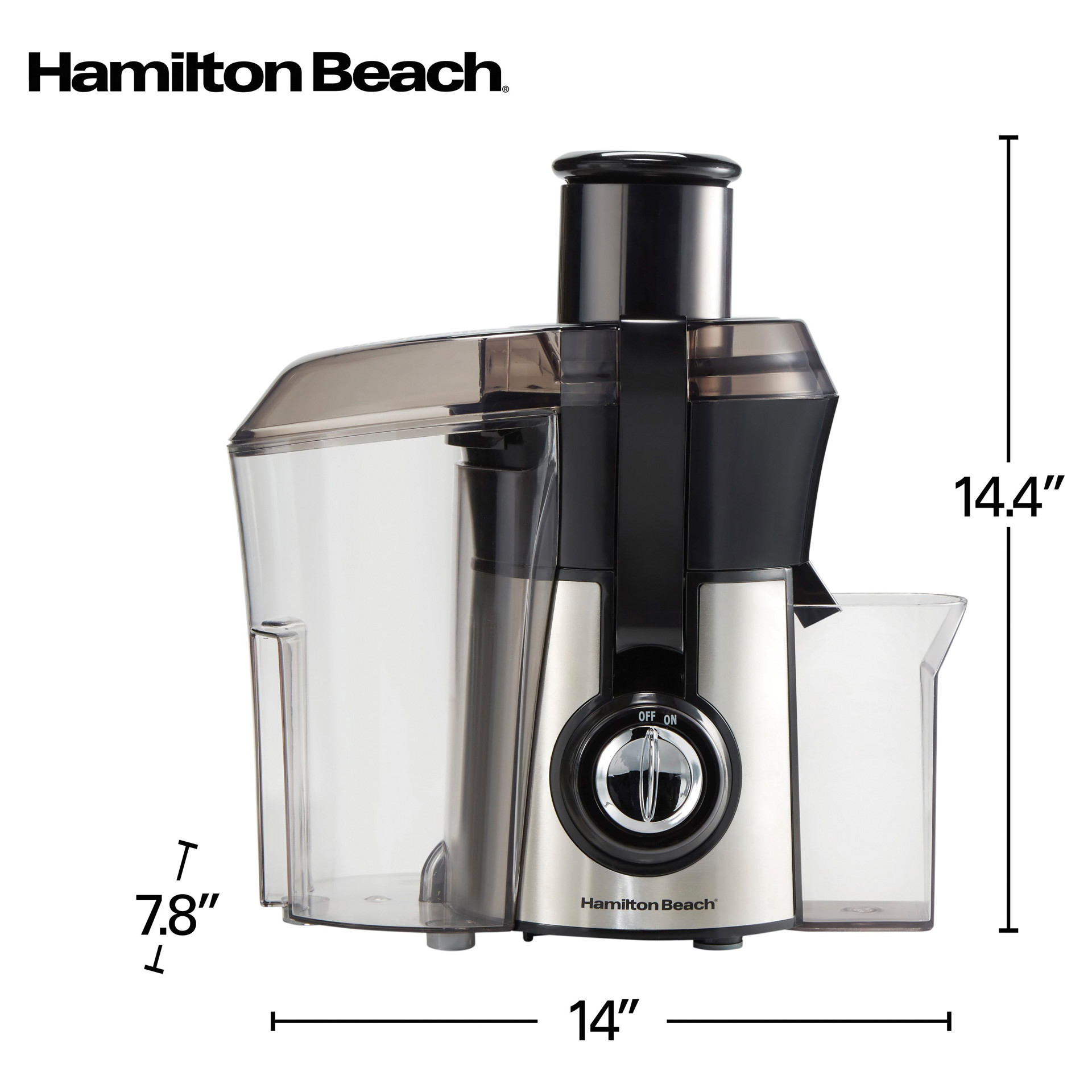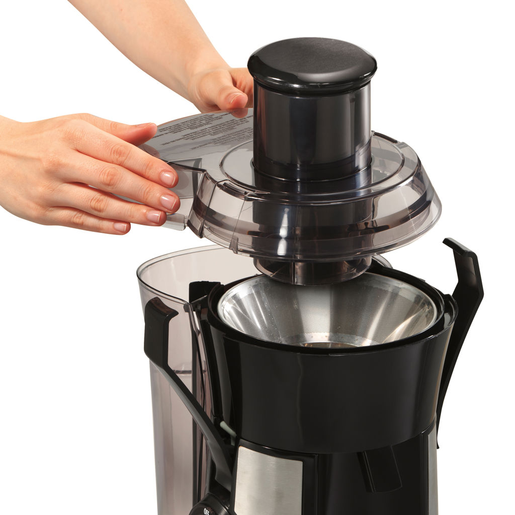 Enjoying fresh, healthy juice has never been easier. With its wide 3" chute, powerful motor, and intuitive controls, the Hamilton Beach Big Mouth® Pro 800-watt Juice Extractor quickly turns whole fruits and vegetables into nutritious juice in seconds.