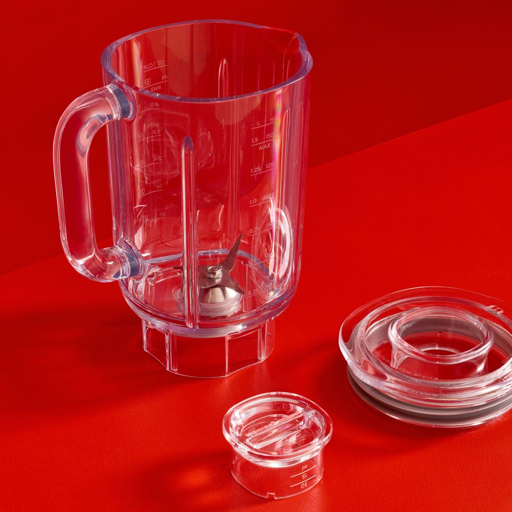 • Lid with measuring cup, for safe and easy addition of ingredients while blending