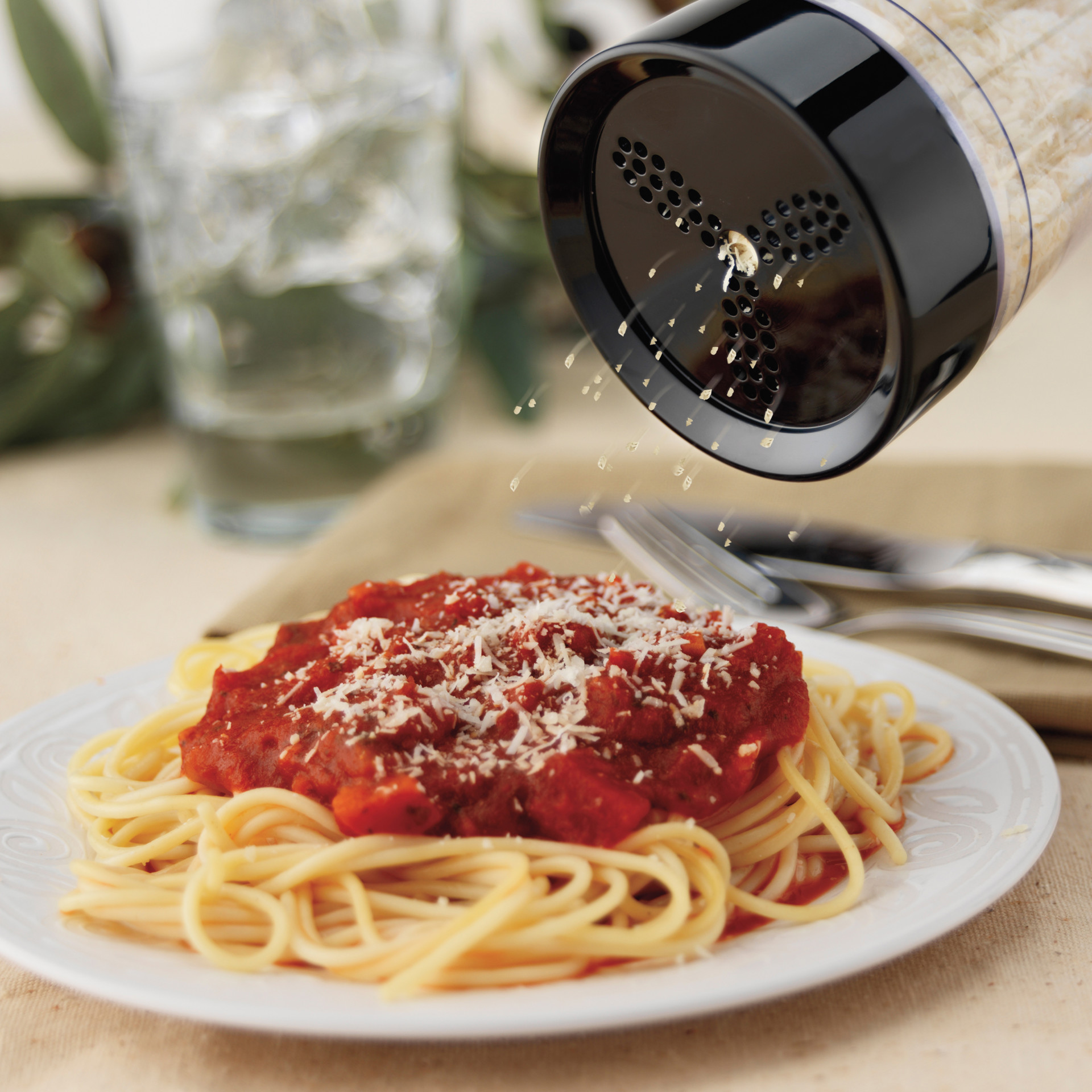 The 240 ml (8 oz) cup is ideal for chopping or fine grinding, and thanks to the included shaker lid, you can take it straight to the table for serving.