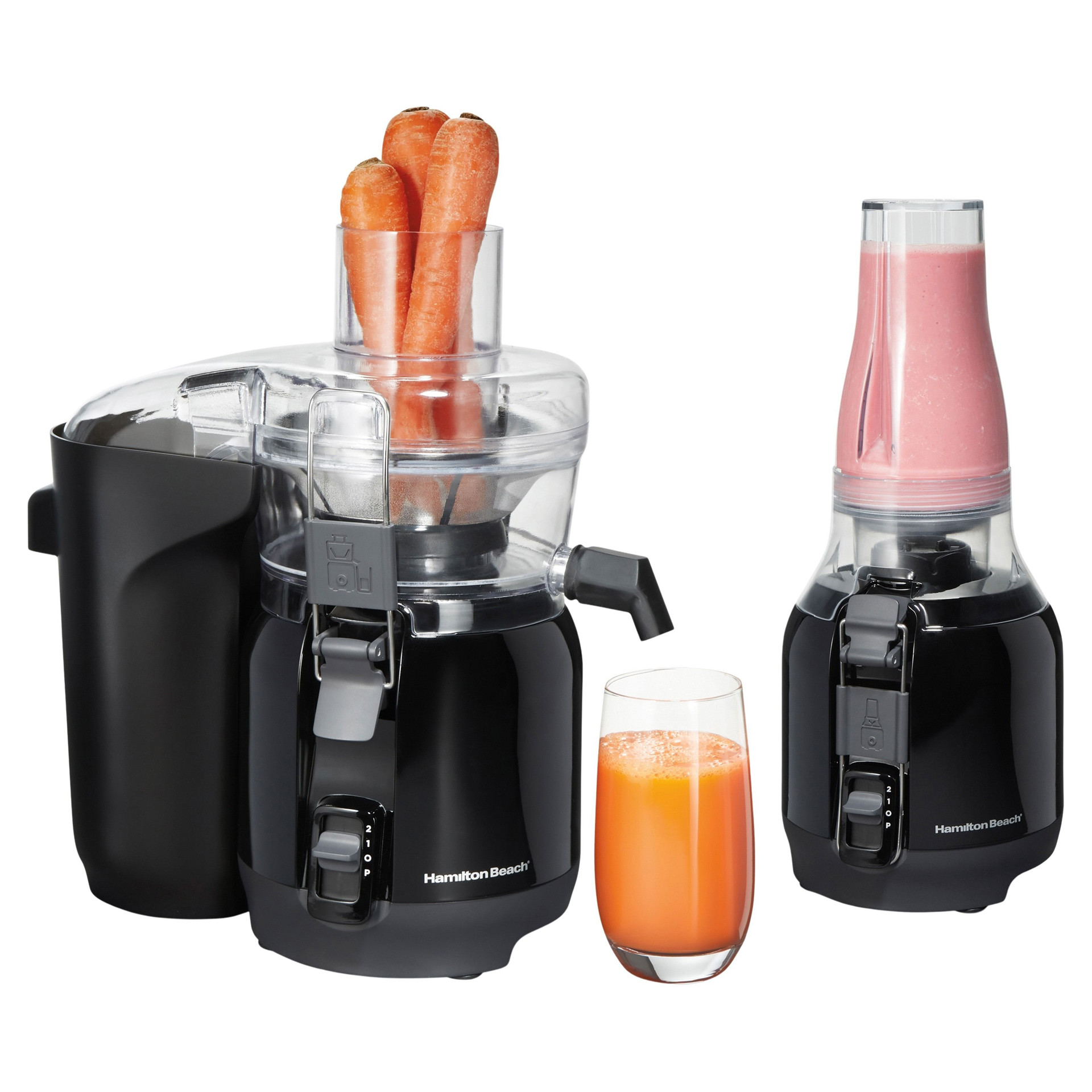 With its versatile 2-in-1 design, the Hamilton Beach Big Mouth® Juice & Blend lets you make fresh juice from whole fruits and vegetables, then add it straight into your favorite blended recipes.