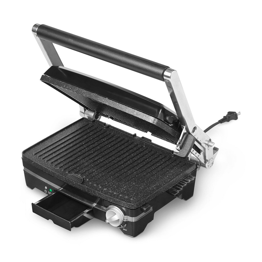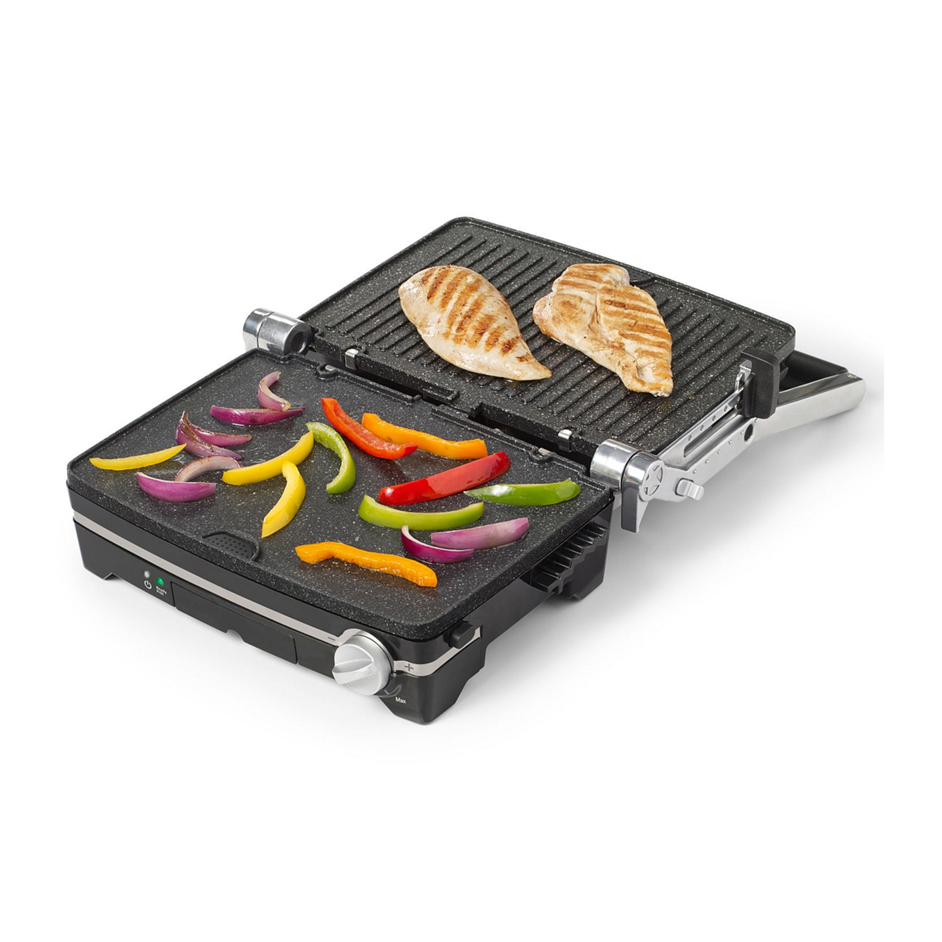 • The flat 180-degree opening also allows it to be used as a 1200W griddle.