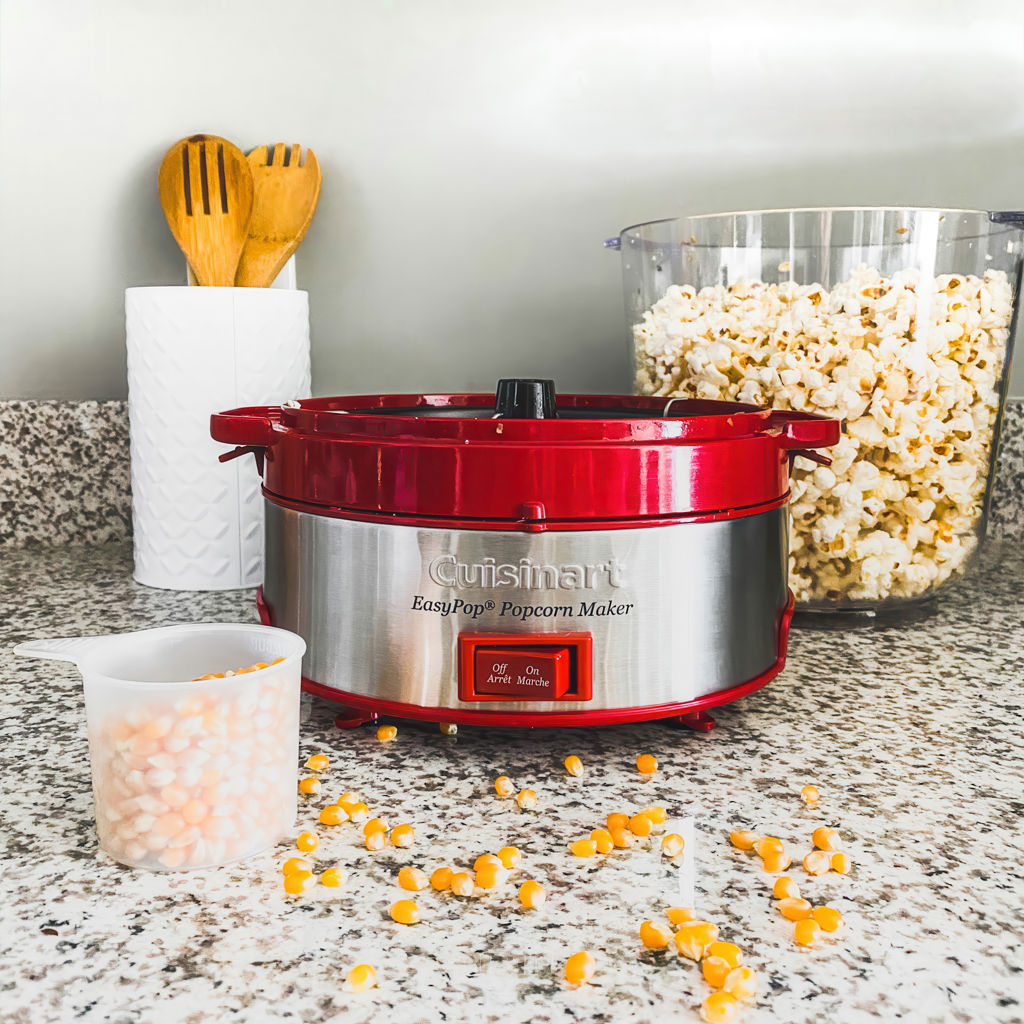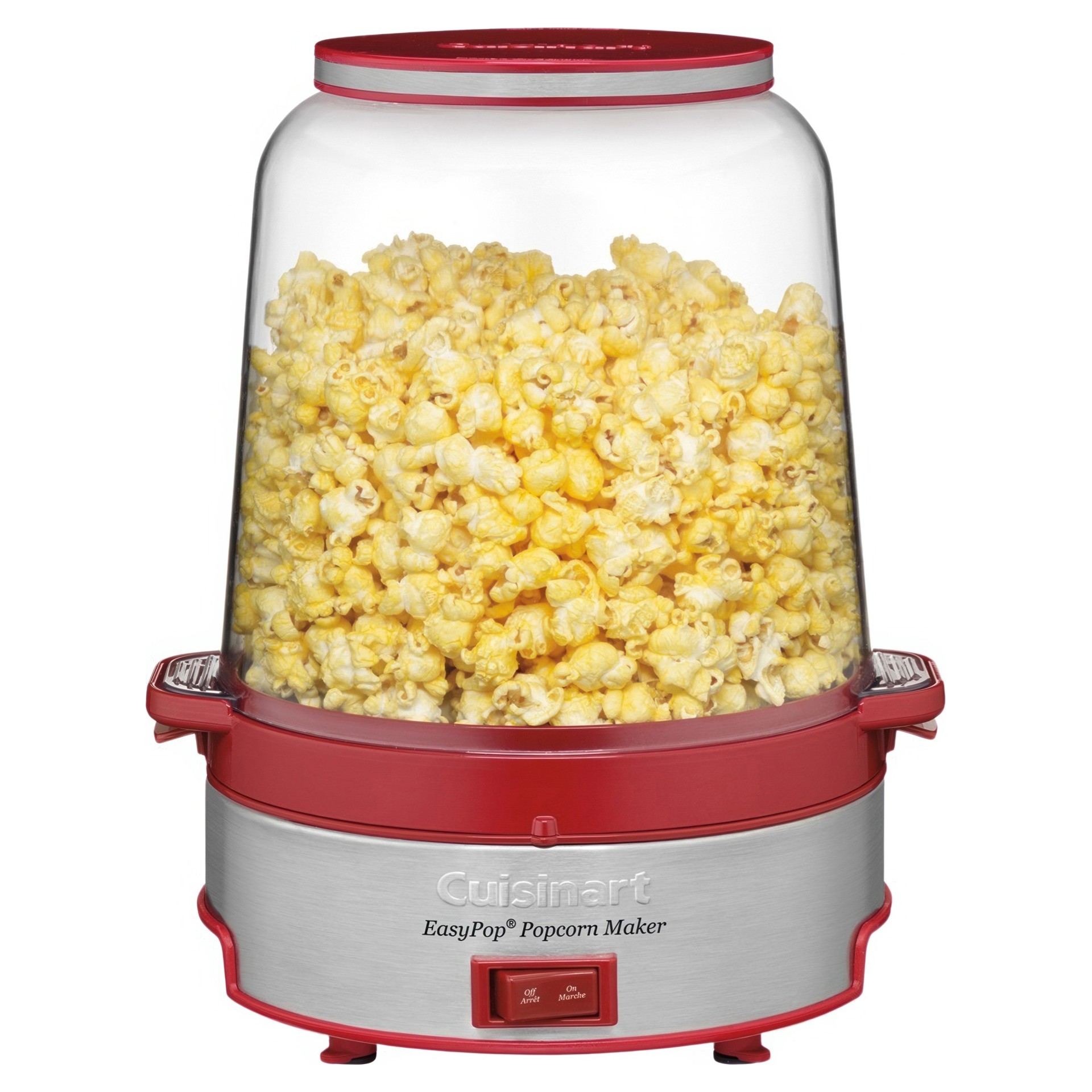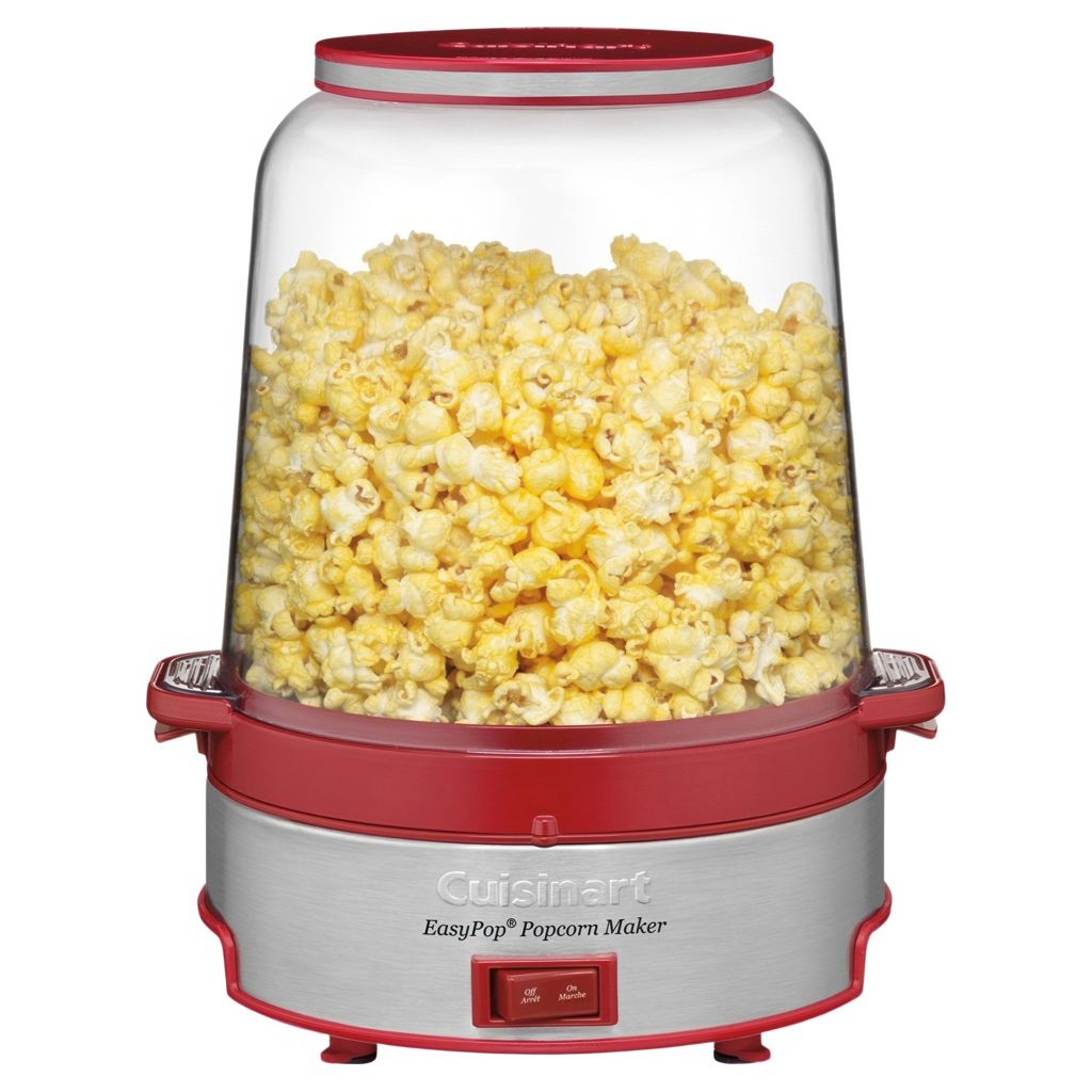 The Cuisinart EasyPop Popcorn Maker operates with a simple switch. Cleaning is just as easy: all removable parts are dishwasher safe. Easy! Quick! Fun!