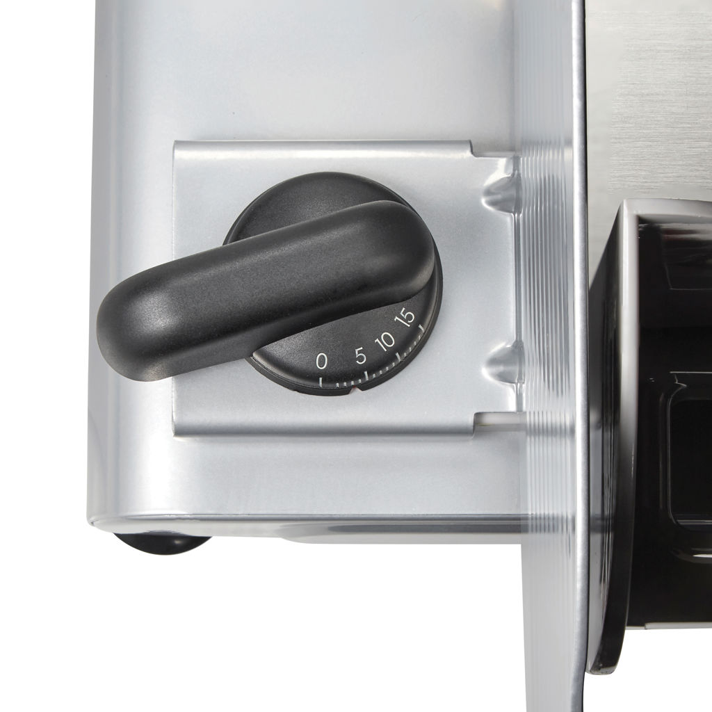 • Powerful 9-tooth stainless steel blade with 200-watt motor: The 9-tooth serrated rotating blade is driven by a 200-watt belt-driven motor for fast, precise slicing of a wide variety of foods.