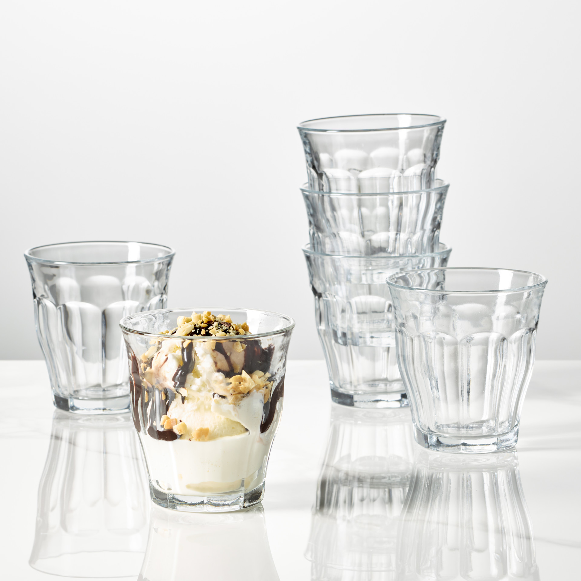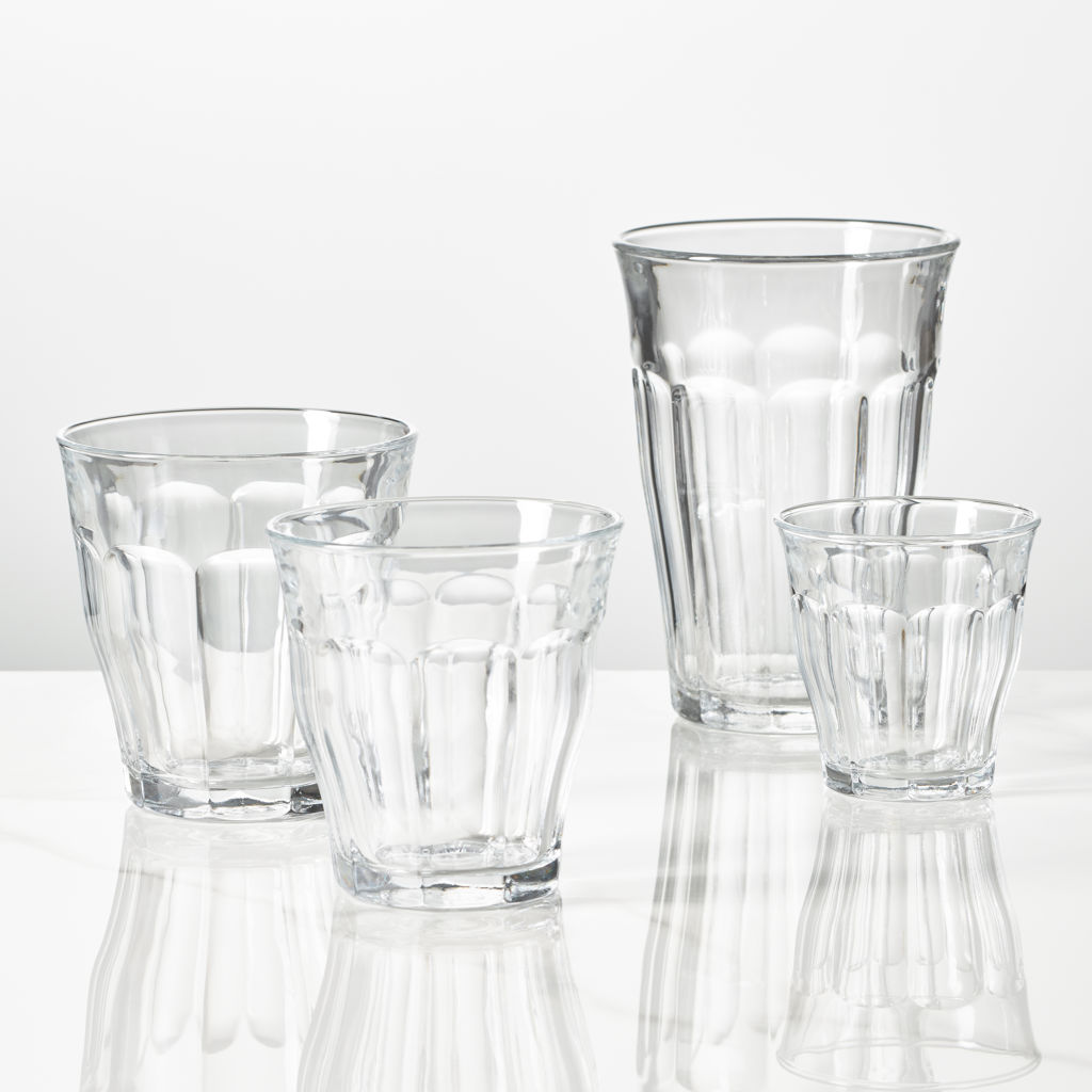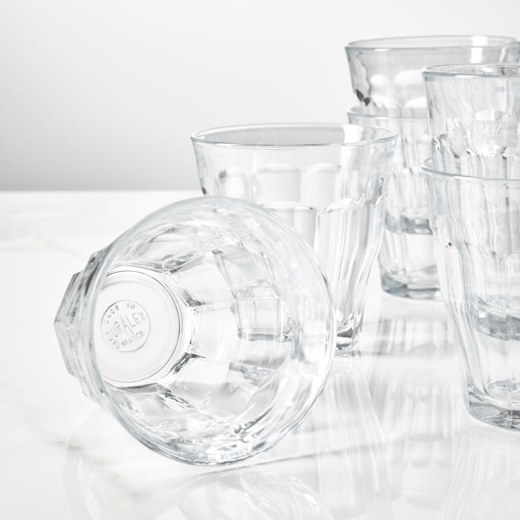 The original tempered Picardie glasses are known as the "original French tumblers". The mechanical and thermal resisting properties are considerably increased and enable these products to maintain its original look for years. Picardie, The Timeless Star! Its unique sensual curves fit perfectly in the hand, its facets ideally catch the light and are conveniently stackable, all gather to make Duralex the perfect choice!