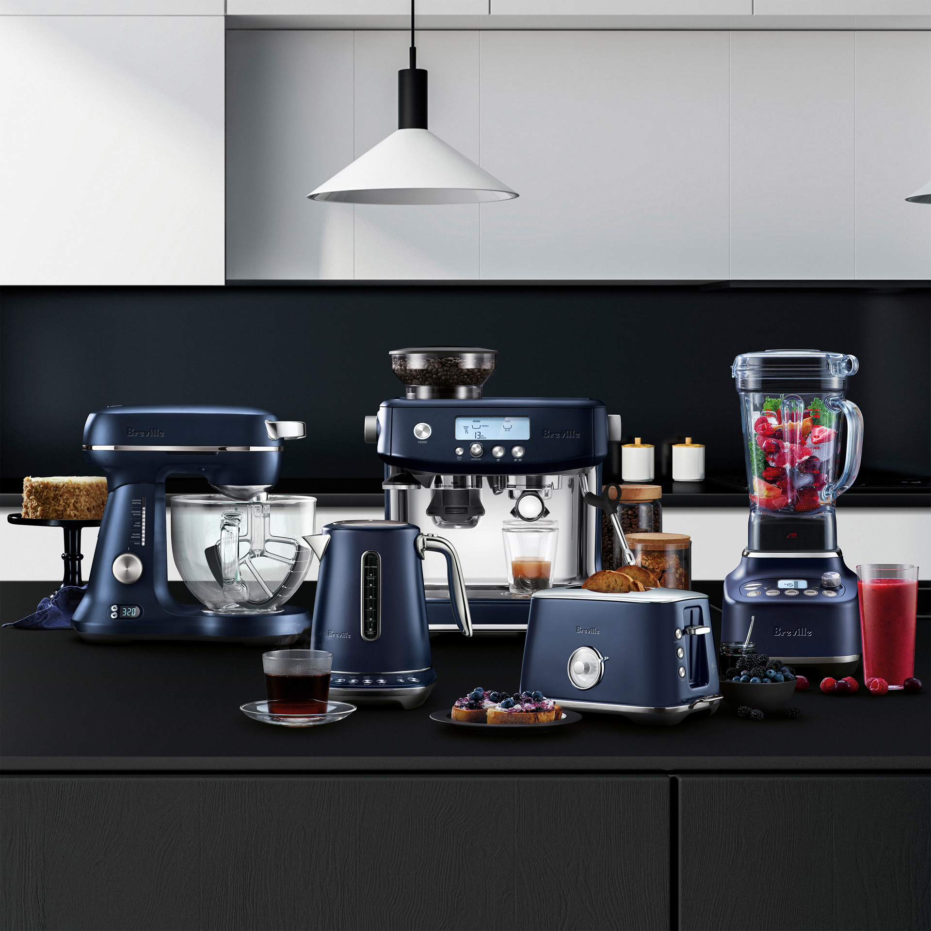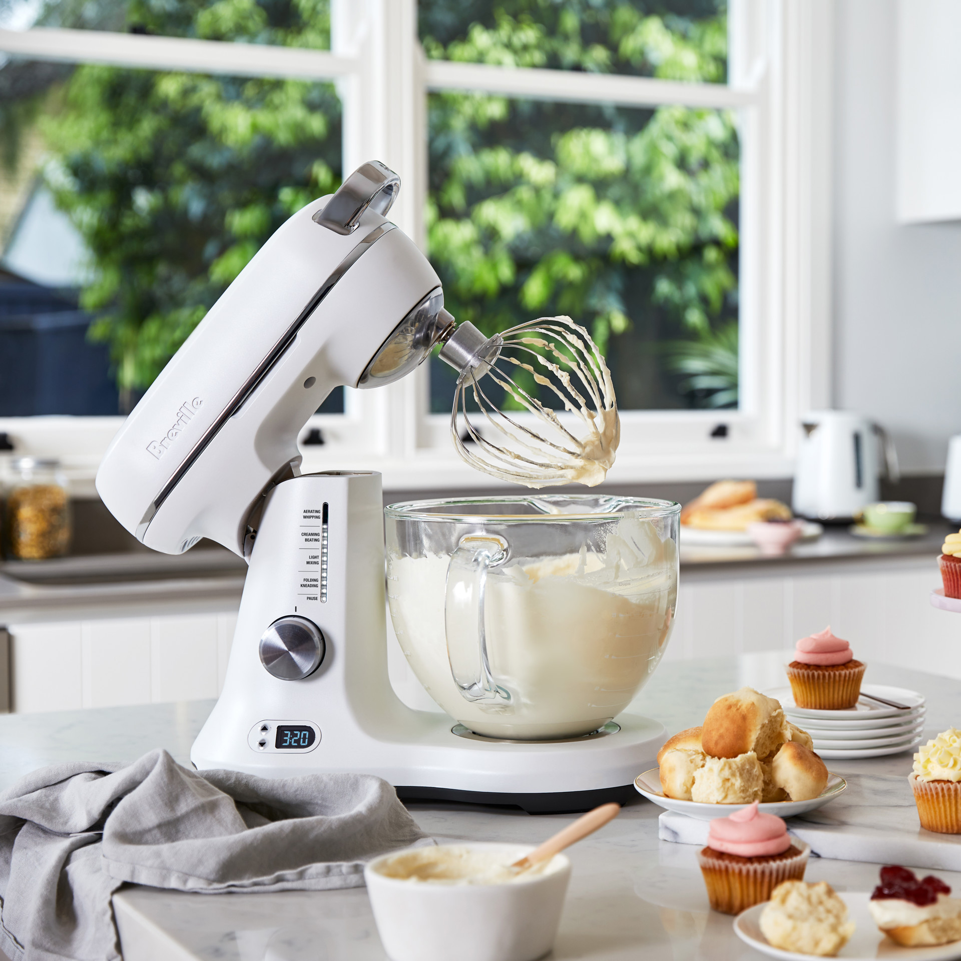 The lamp under the motor head illuminates the borosilicate clear glass bowl and lets you keep an eye on mixing.